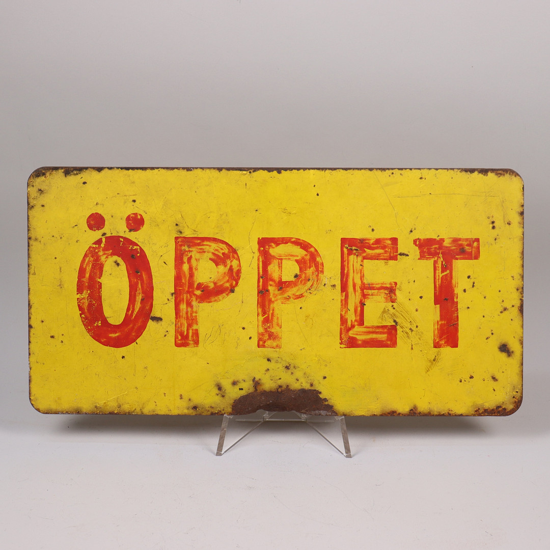 4987601. SKILT, „Åben“, malet heavy metal.
