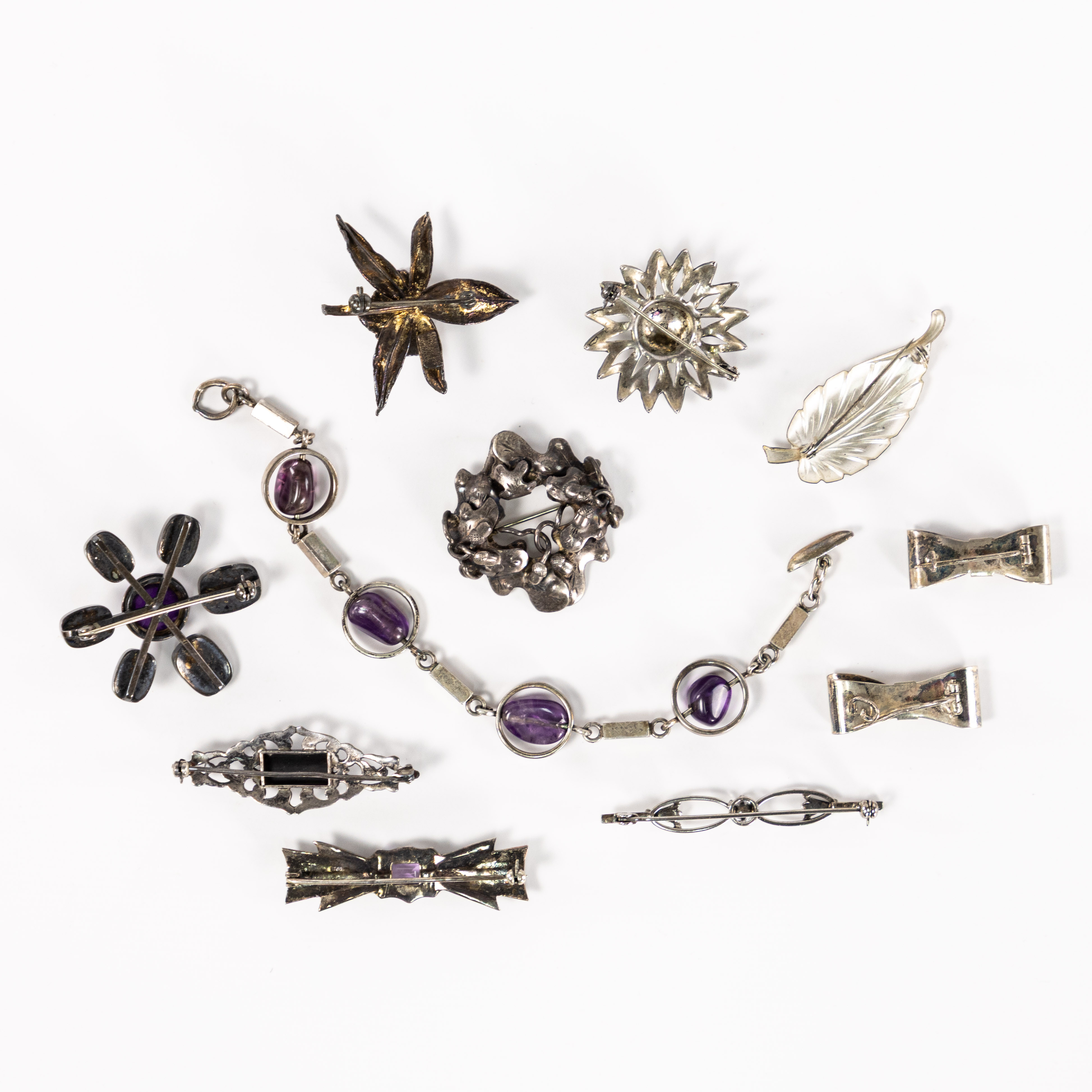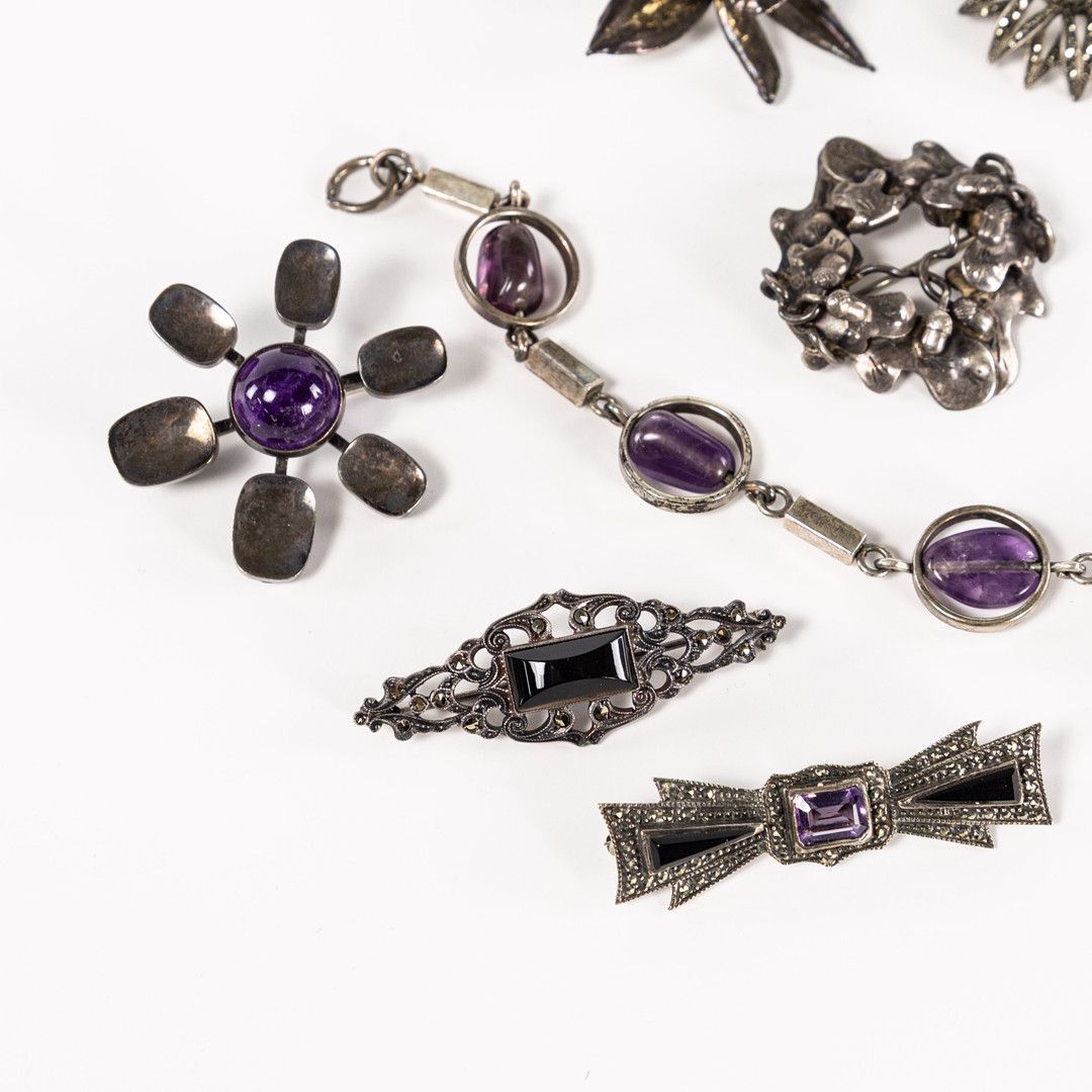 4987733. BROCHER, ARMBÅND, 11 stk, sølv.