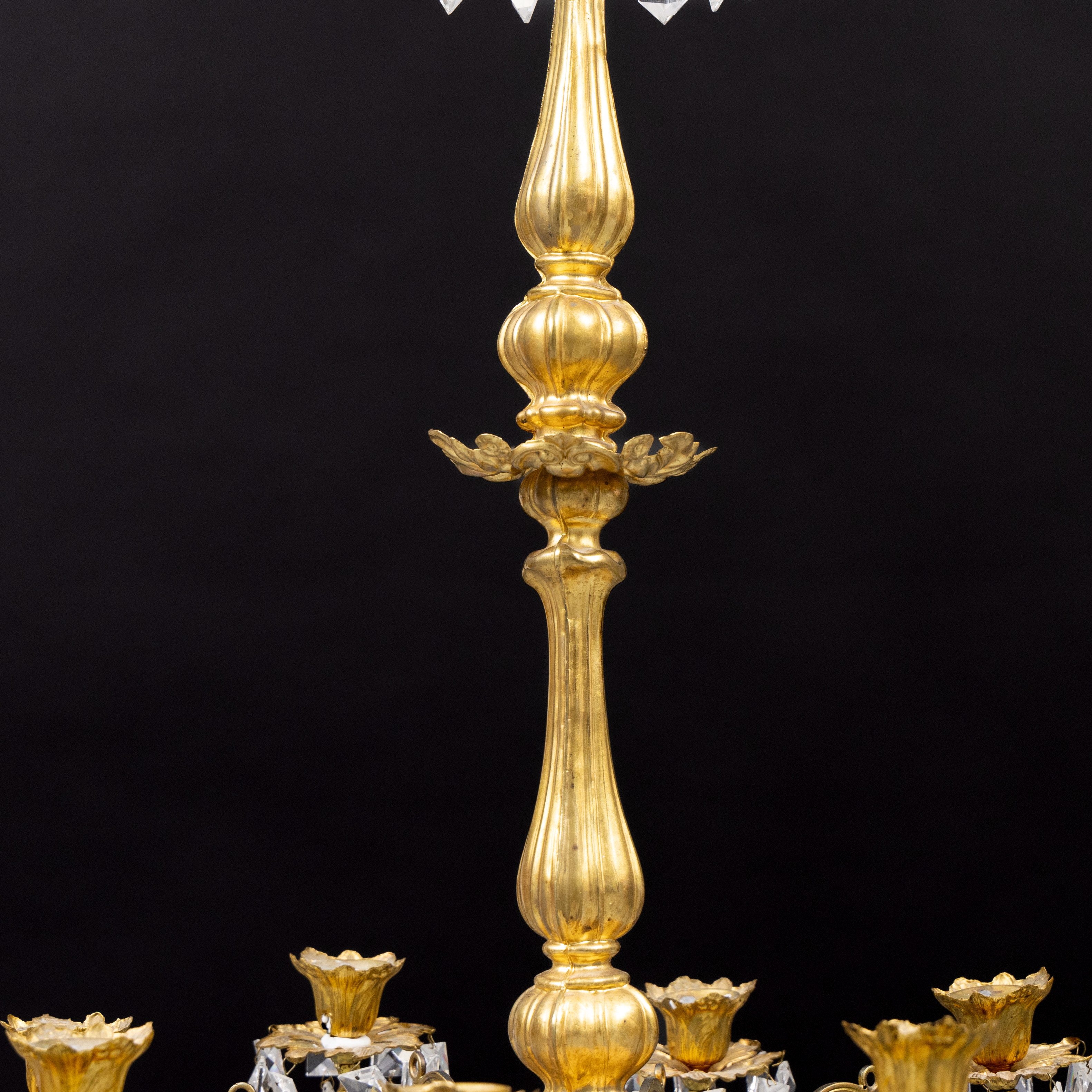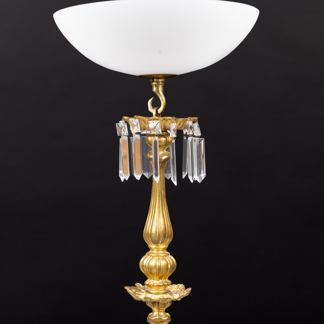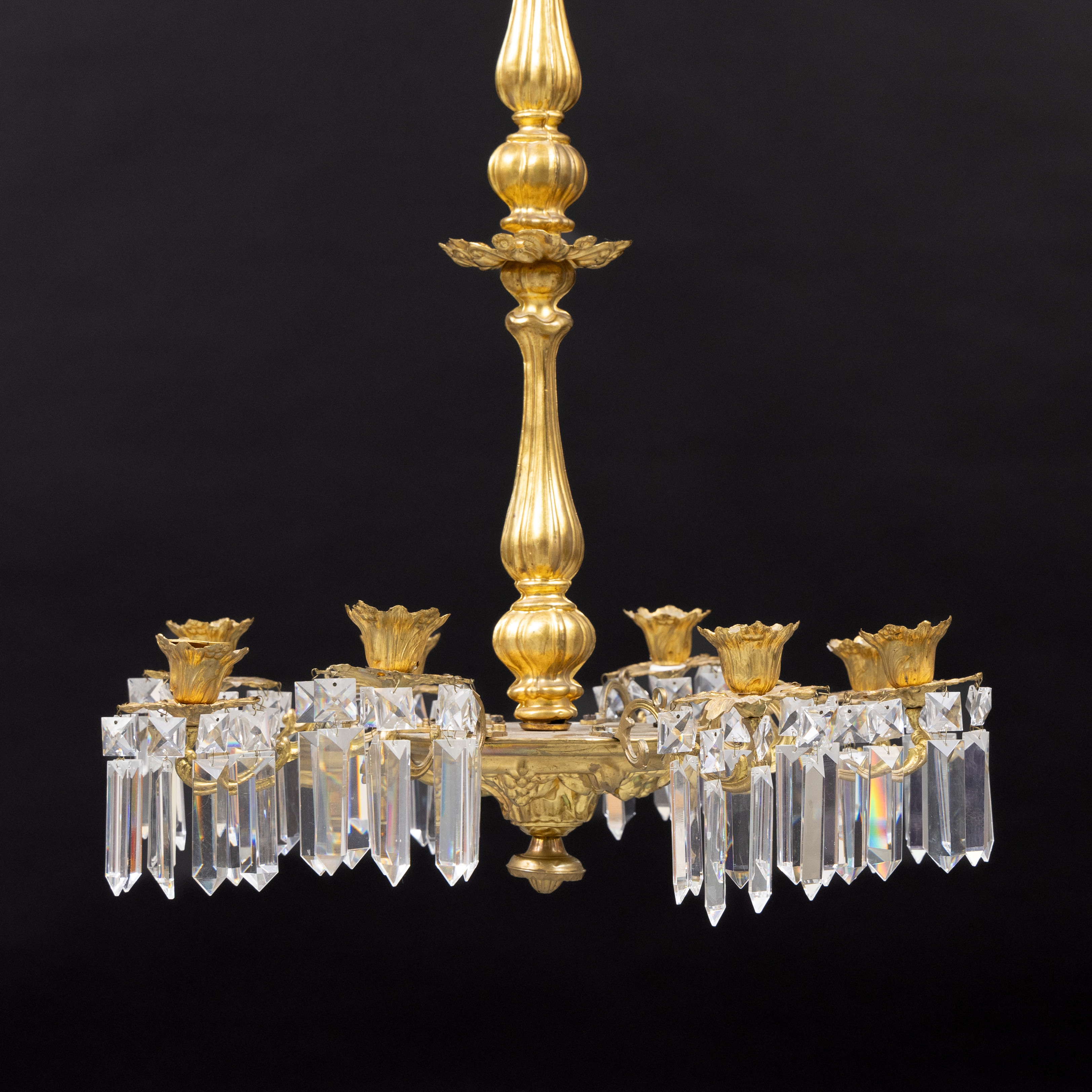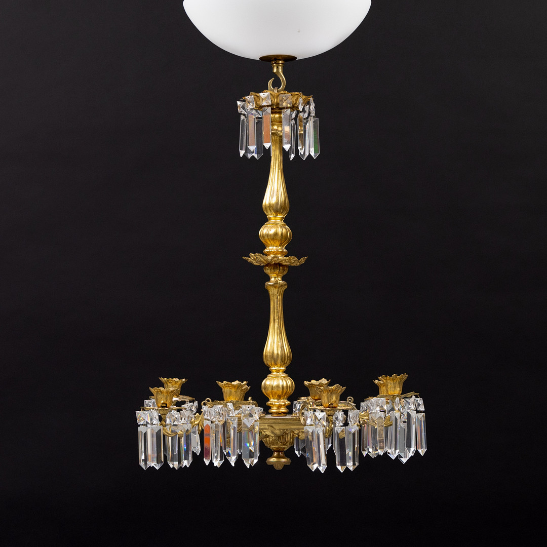 4988129. Lysekrone, messing og glas, 20. århundrede.