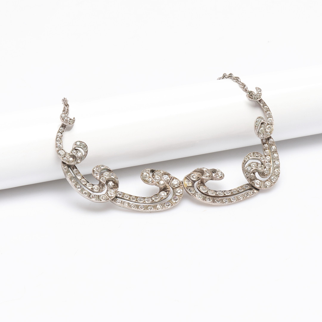 4988155. HALSKÆDE, sølv med sten, 1930'er/40'ere.