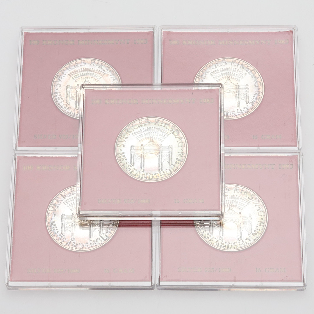 4988335. SØLVMØNTER, 5 stk, 80 gram, Sverige.