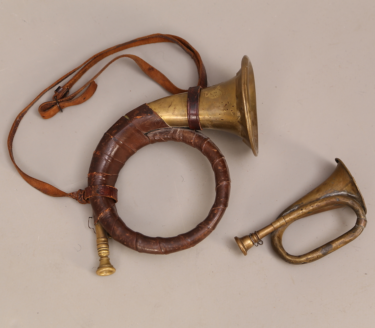 498846. JAKTHORN, 2 stk, messing, 1900-tallet.