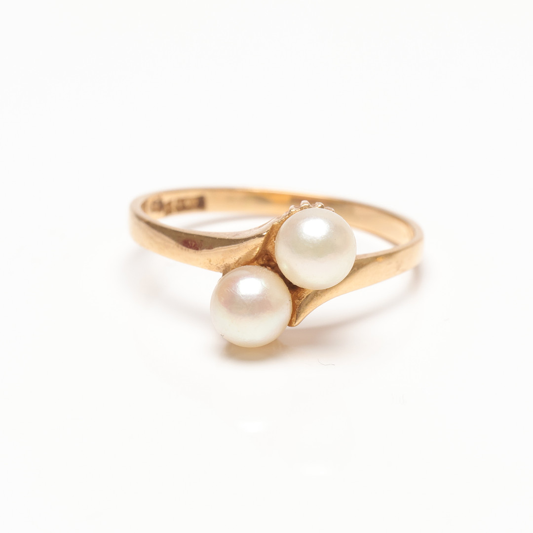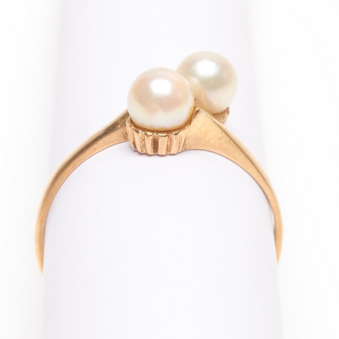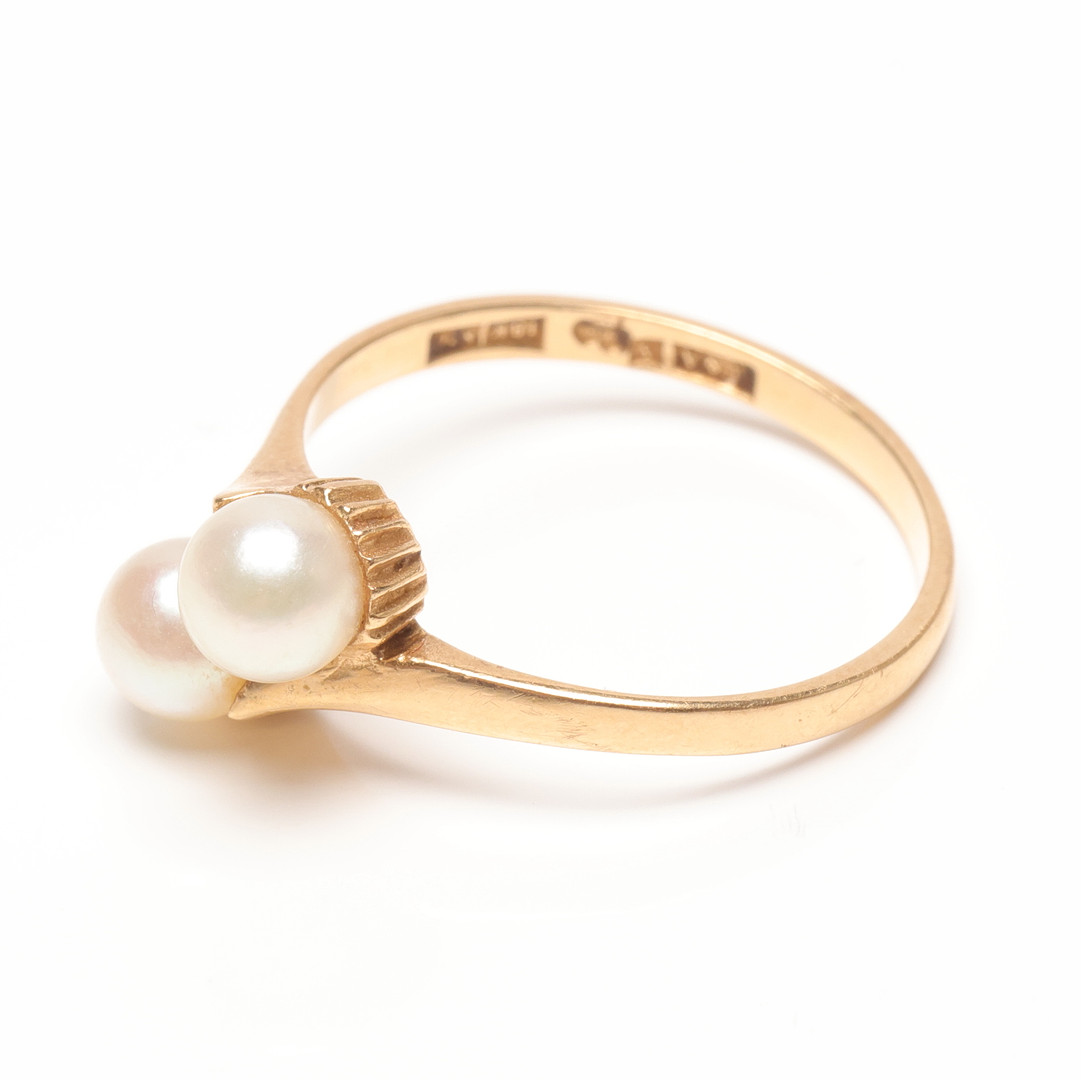4989051. RING med perler 18k guld vægt ca 2,7 g.