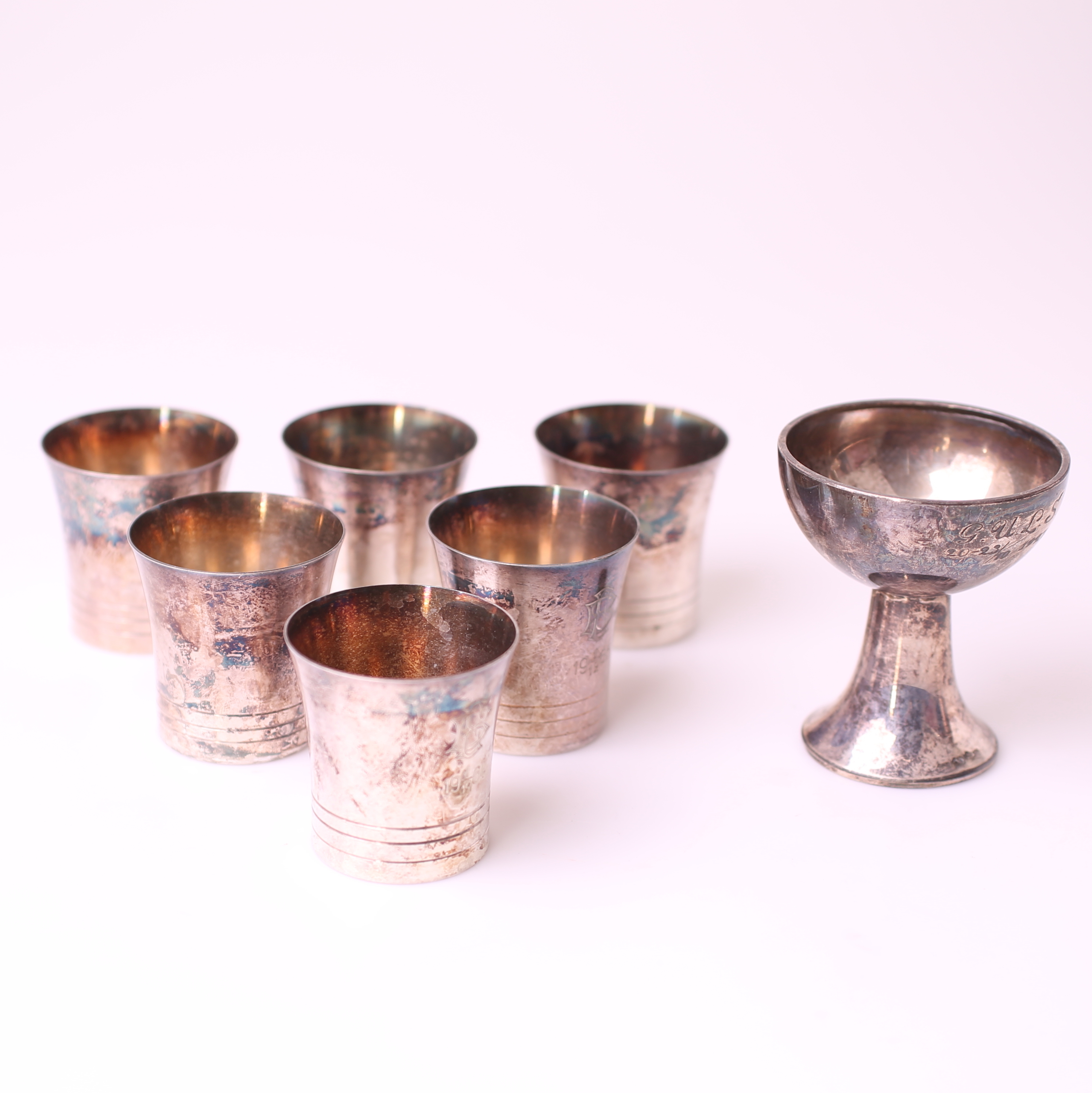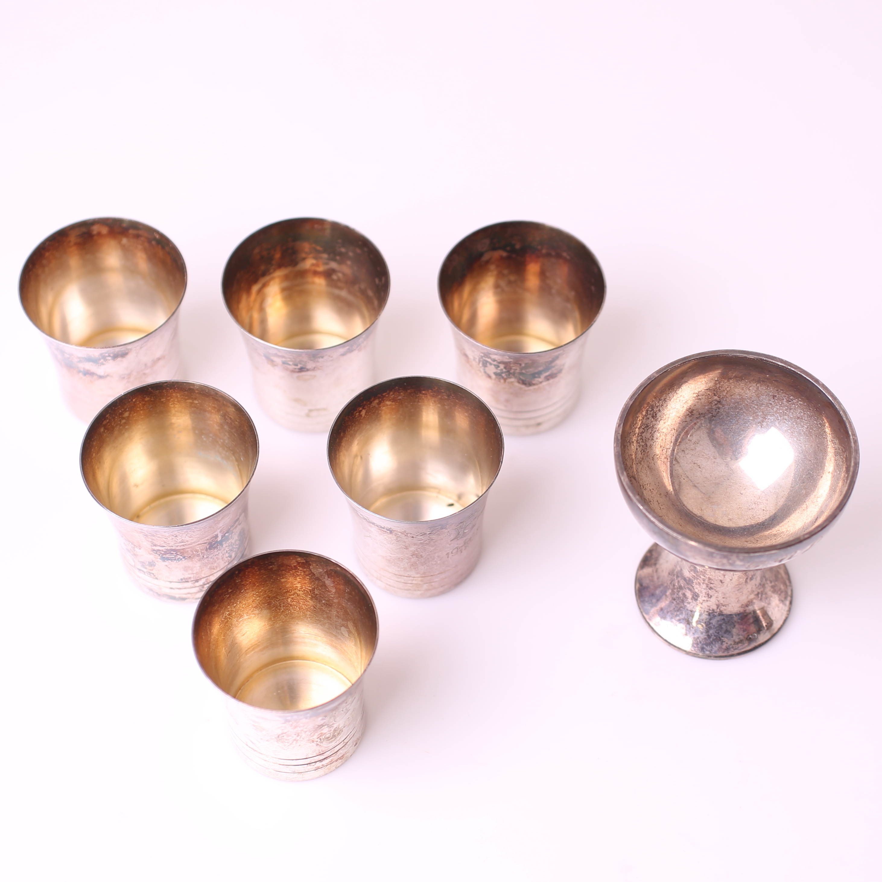 498970. KRUS, 6 stk, sølv + KOPPER, 1 stk, sølv, begge 1900-tallet.