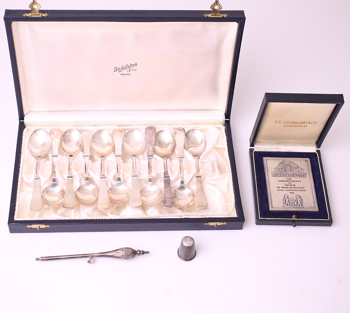 498981. SØLVOBJEKTER, 14 dele, vægt = 230 gram, 1900-tallet.
