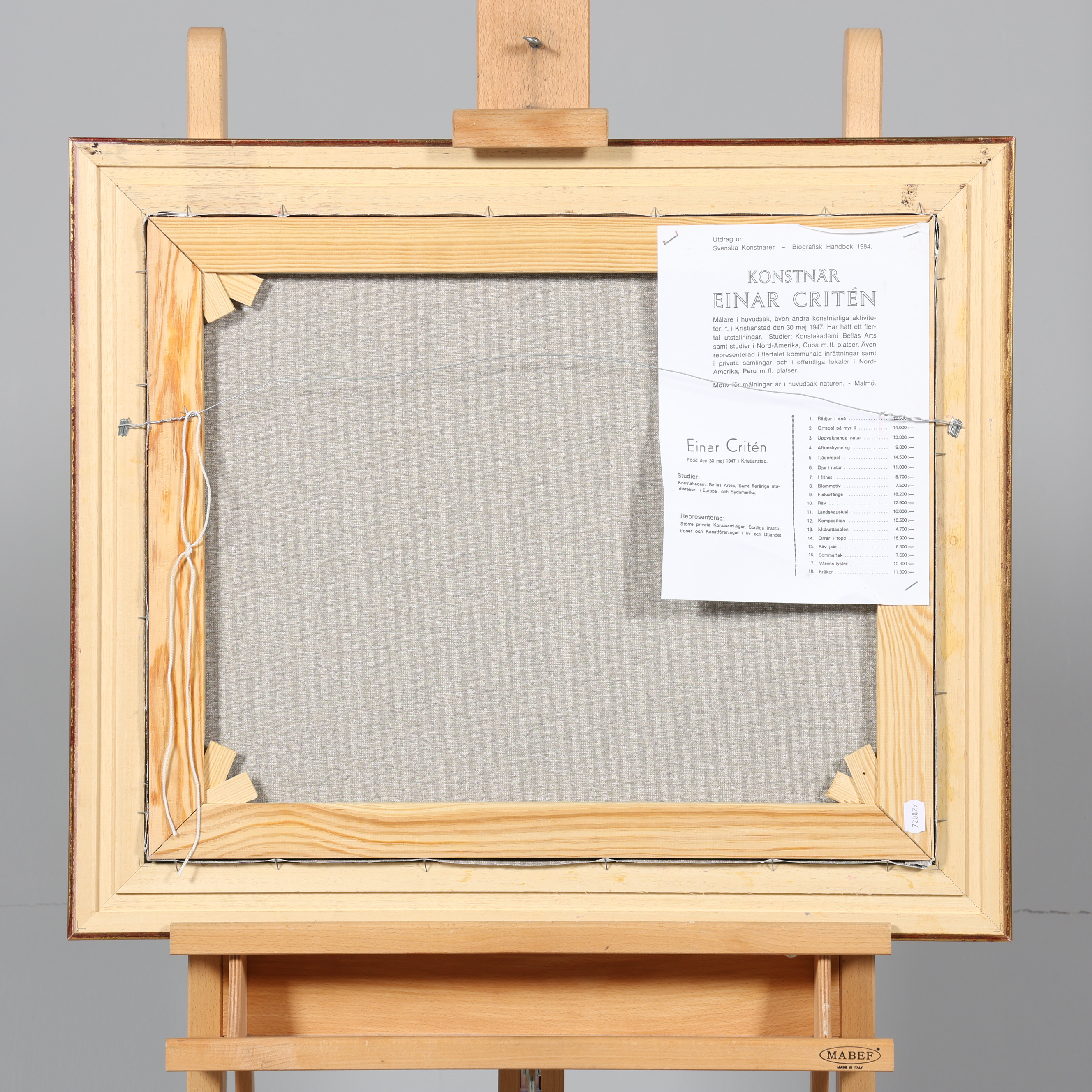 4991367. EINAR CRITÉN. OLIE PÅ LÆRRED, Signeret.