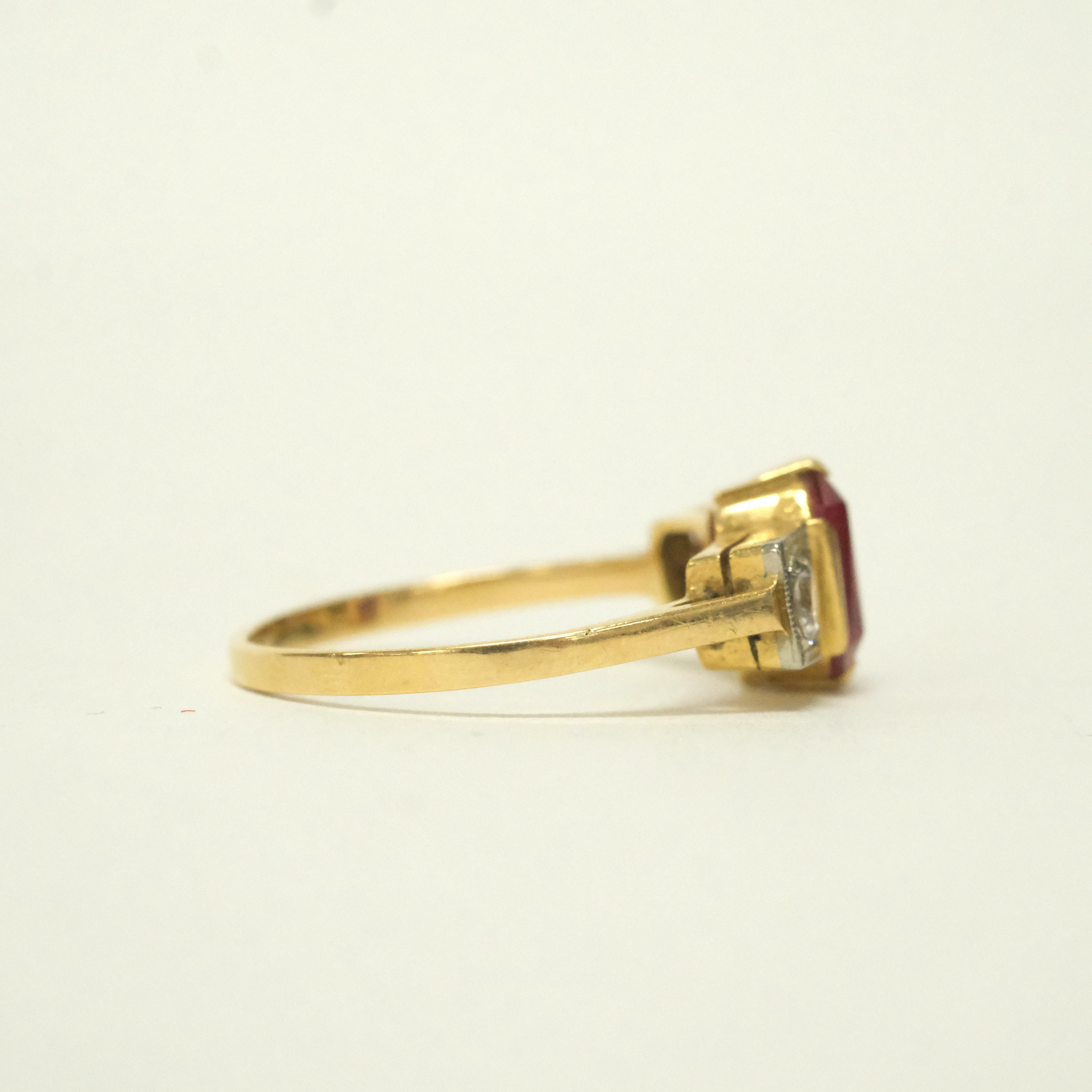 4992311. RING MED SLIBTE STEN 18 KT. GULD.