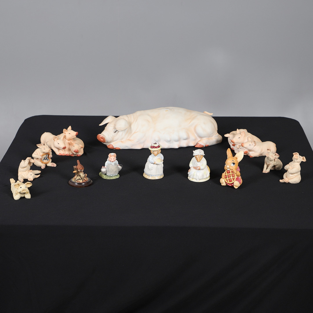 4992639. ASSORTEREDE KERAMISKE OG HARPIKSDYREFIGURER.