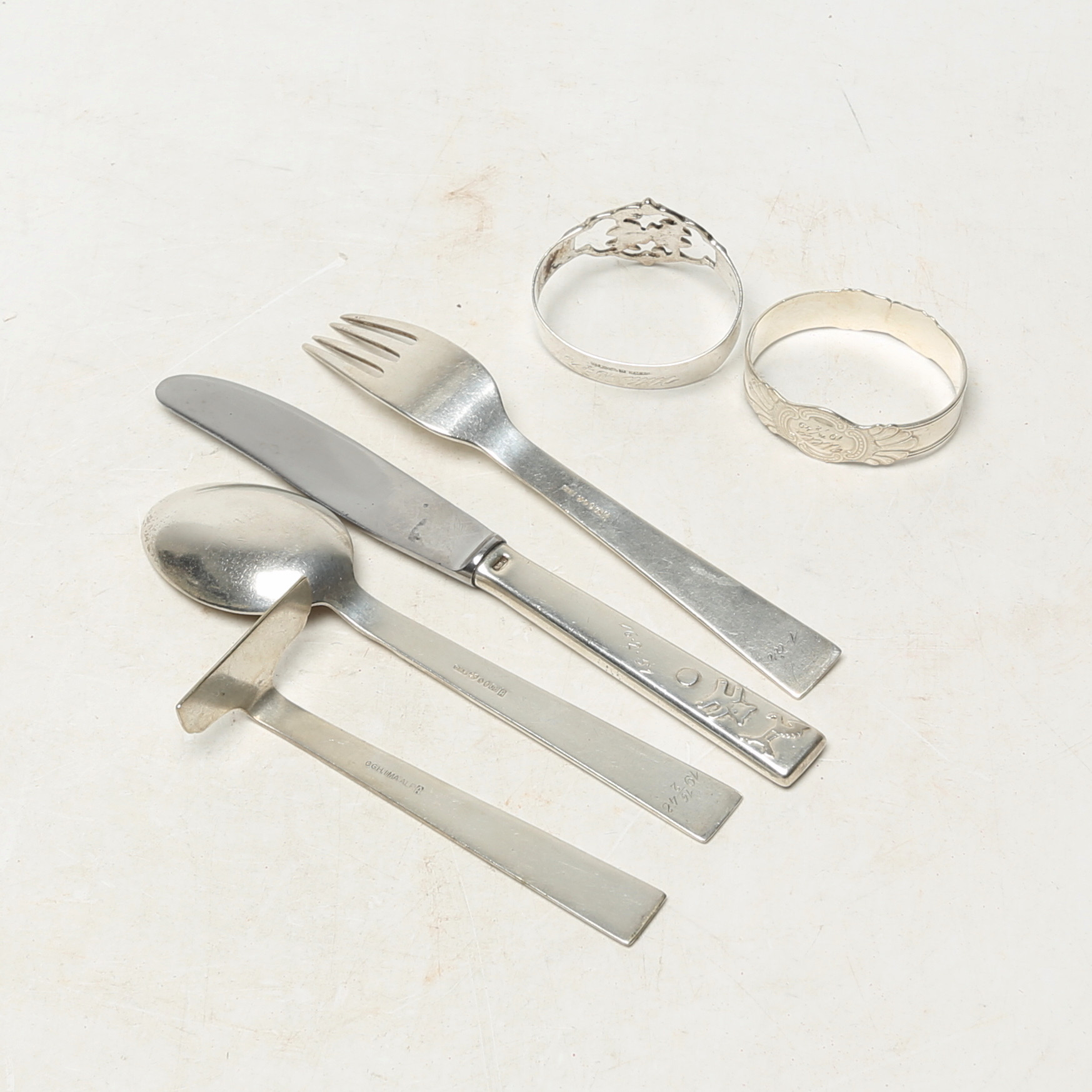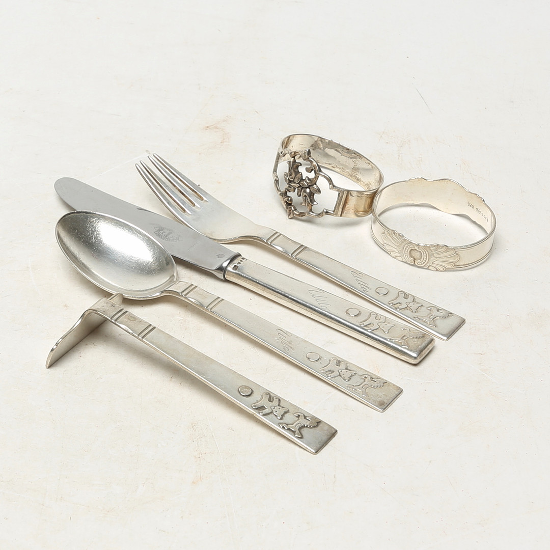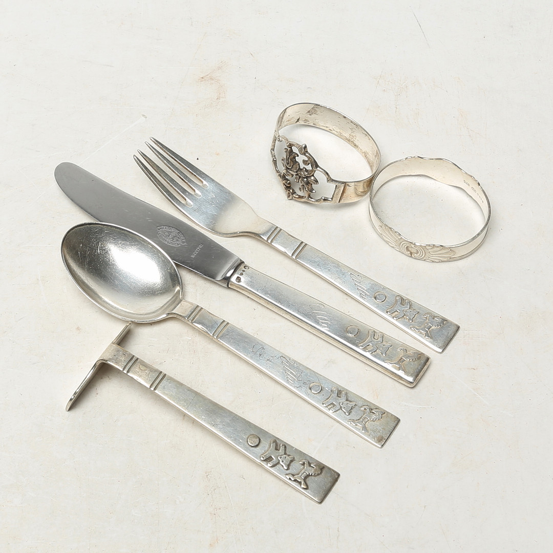 4994374. SØLVOBJEKTER, 5 stk, nysølv 1 stk.