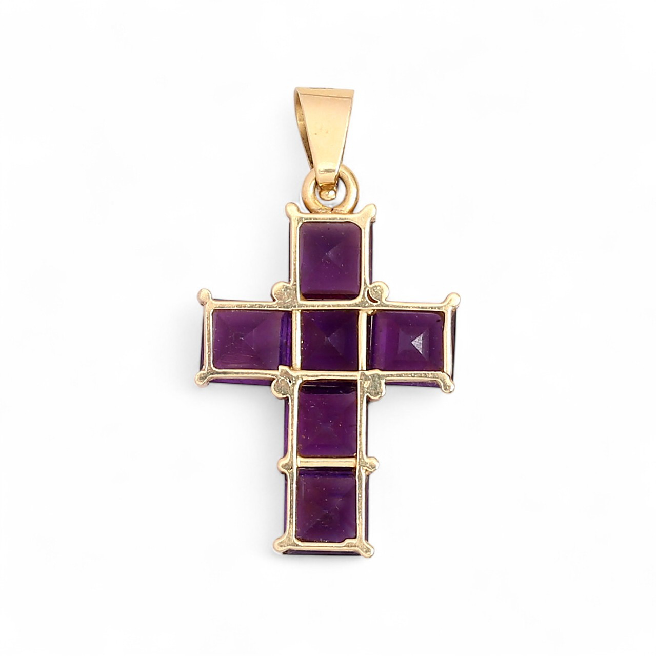 4994884. Kors vedhæng i guld og ametyster.