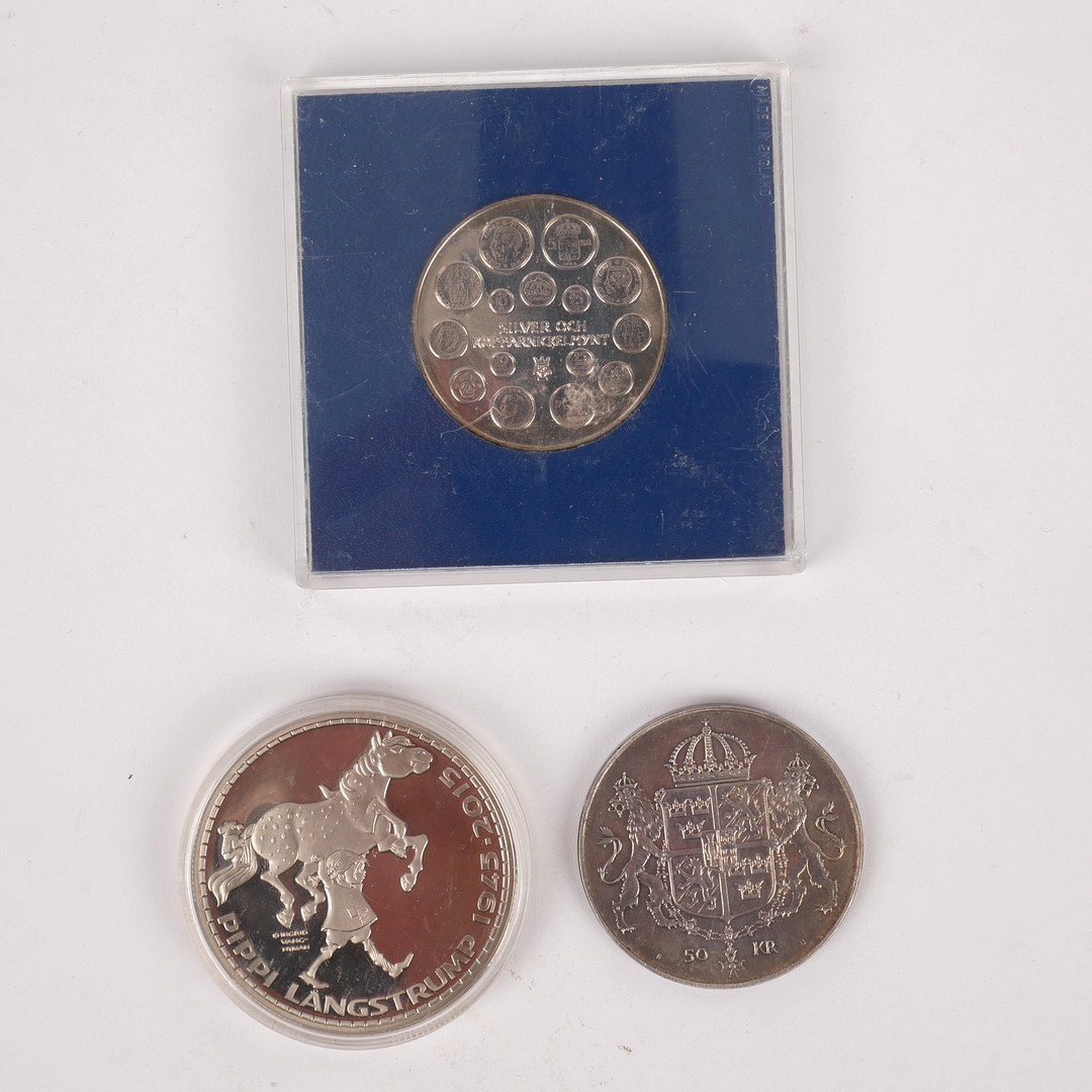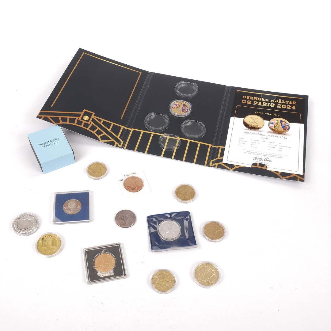 4995040. SAMLERMØNTER OG MEDALJER, 14 stk, blå sølv.