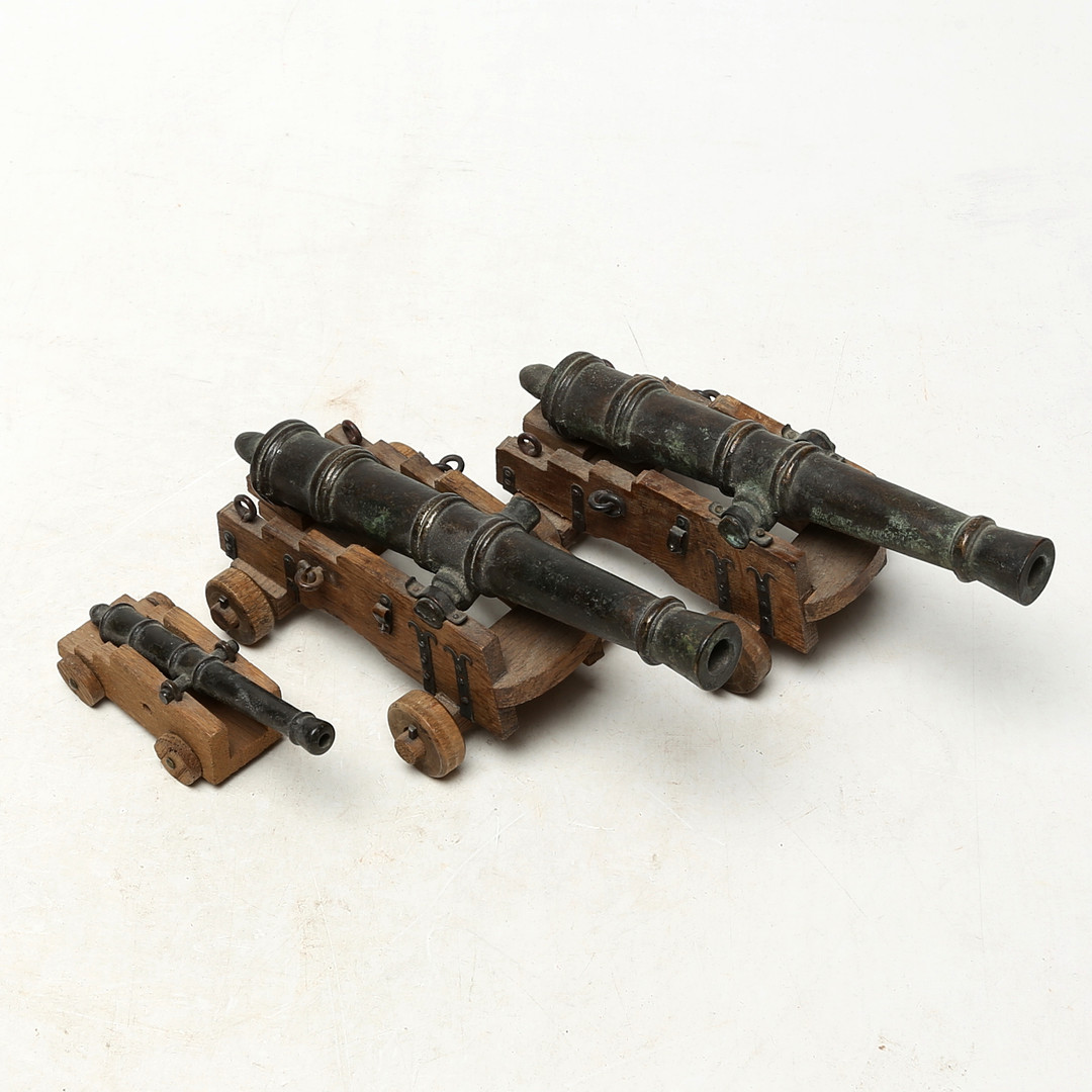 4996164. MINI KANONER, 3 stk, bronze/træ.
