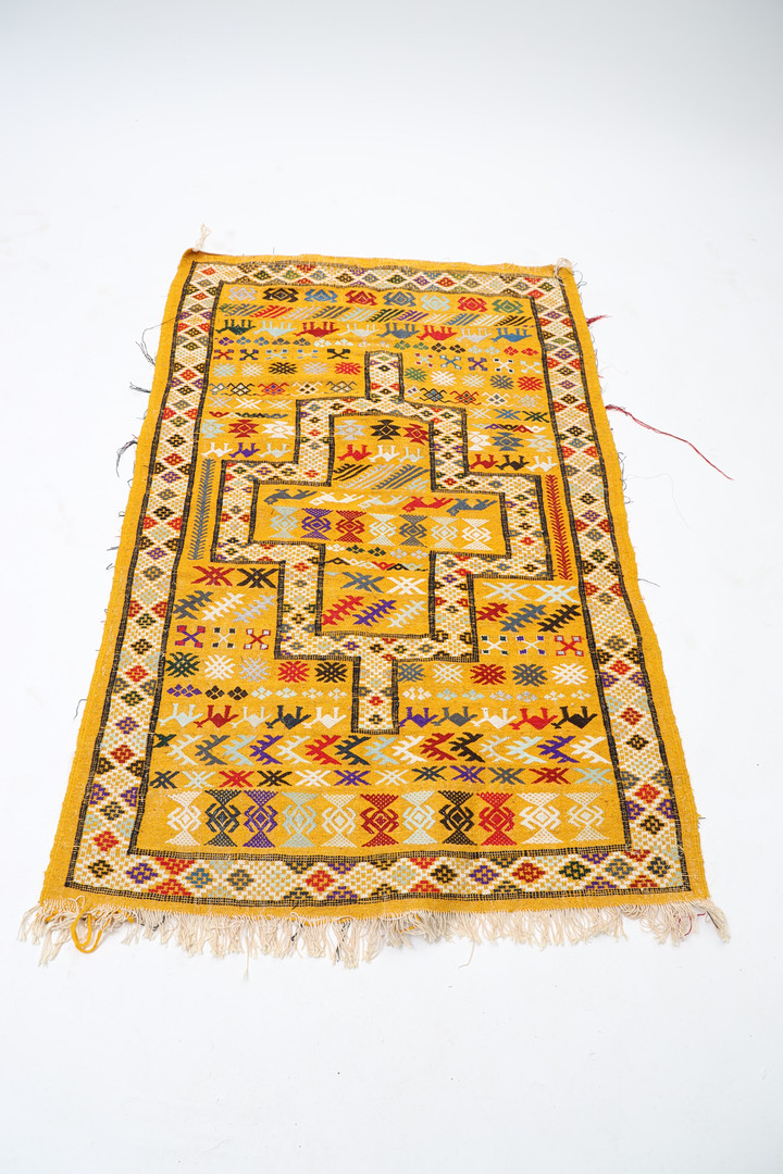 4997388. VÆVET TÆPPE MED BRODERET INDRETNING.