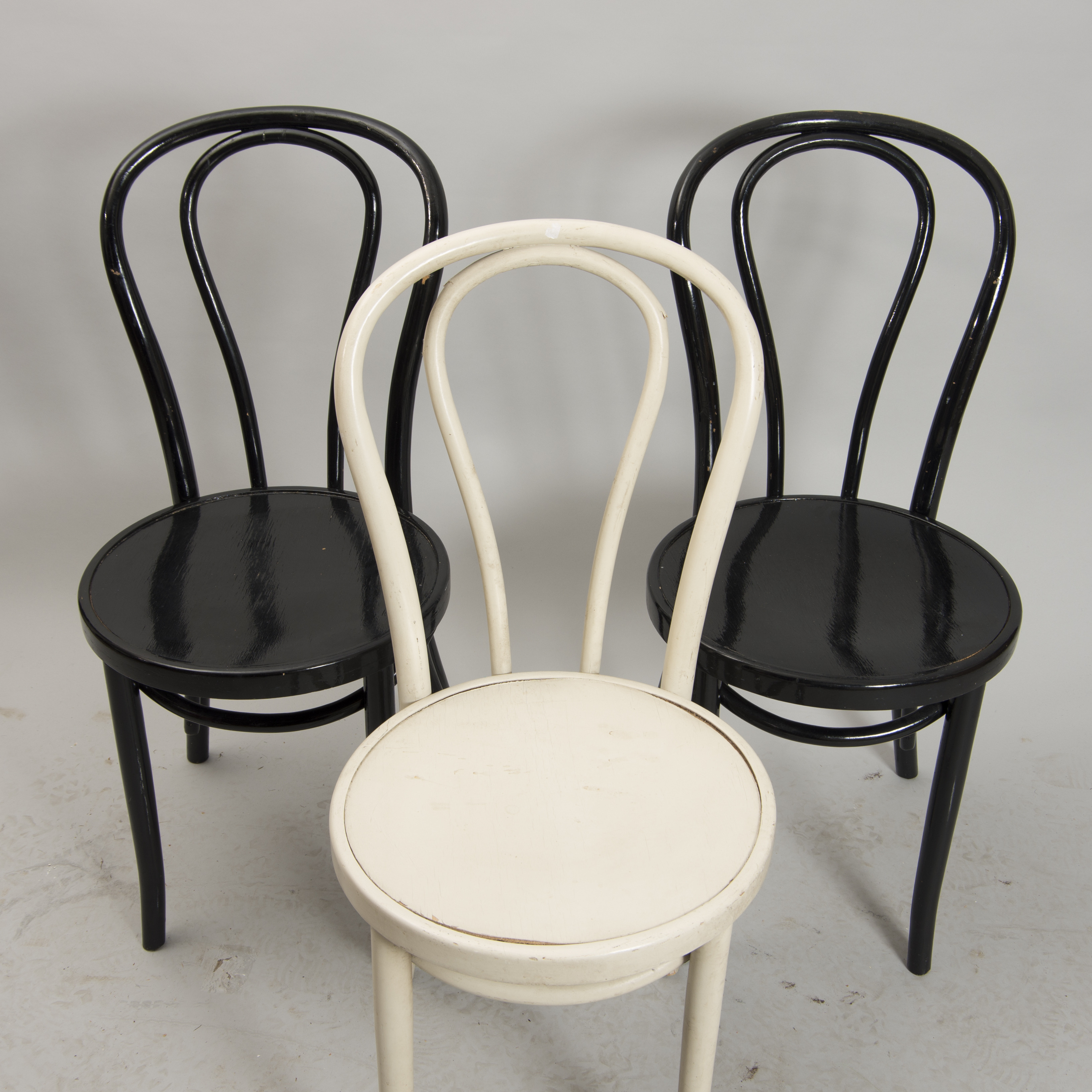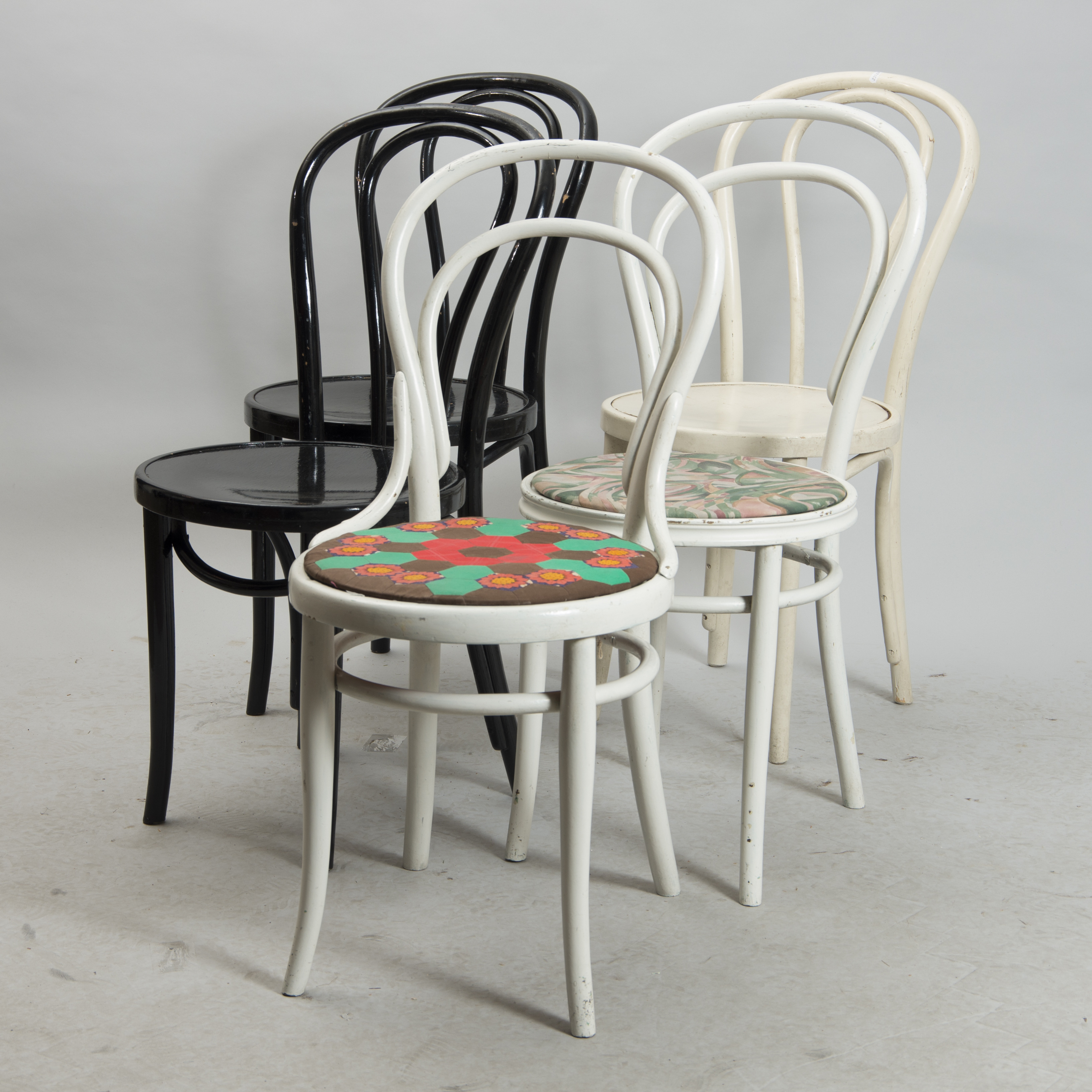 499745. STOLE, 5 stk, sort-hvidmalet, bukket træ.