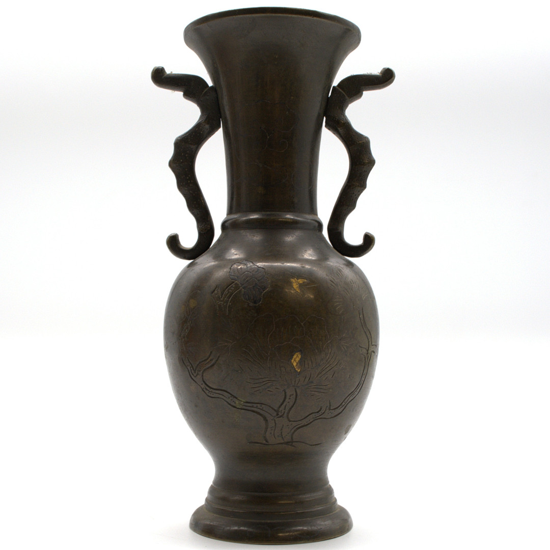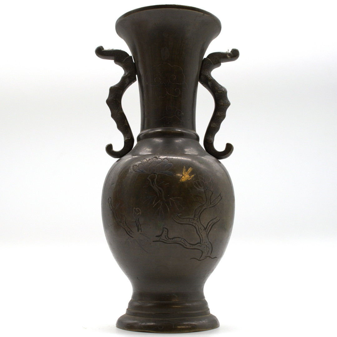 4997971. KINESISK BRONZE VASE MED DRAGEHÅNDTAG.