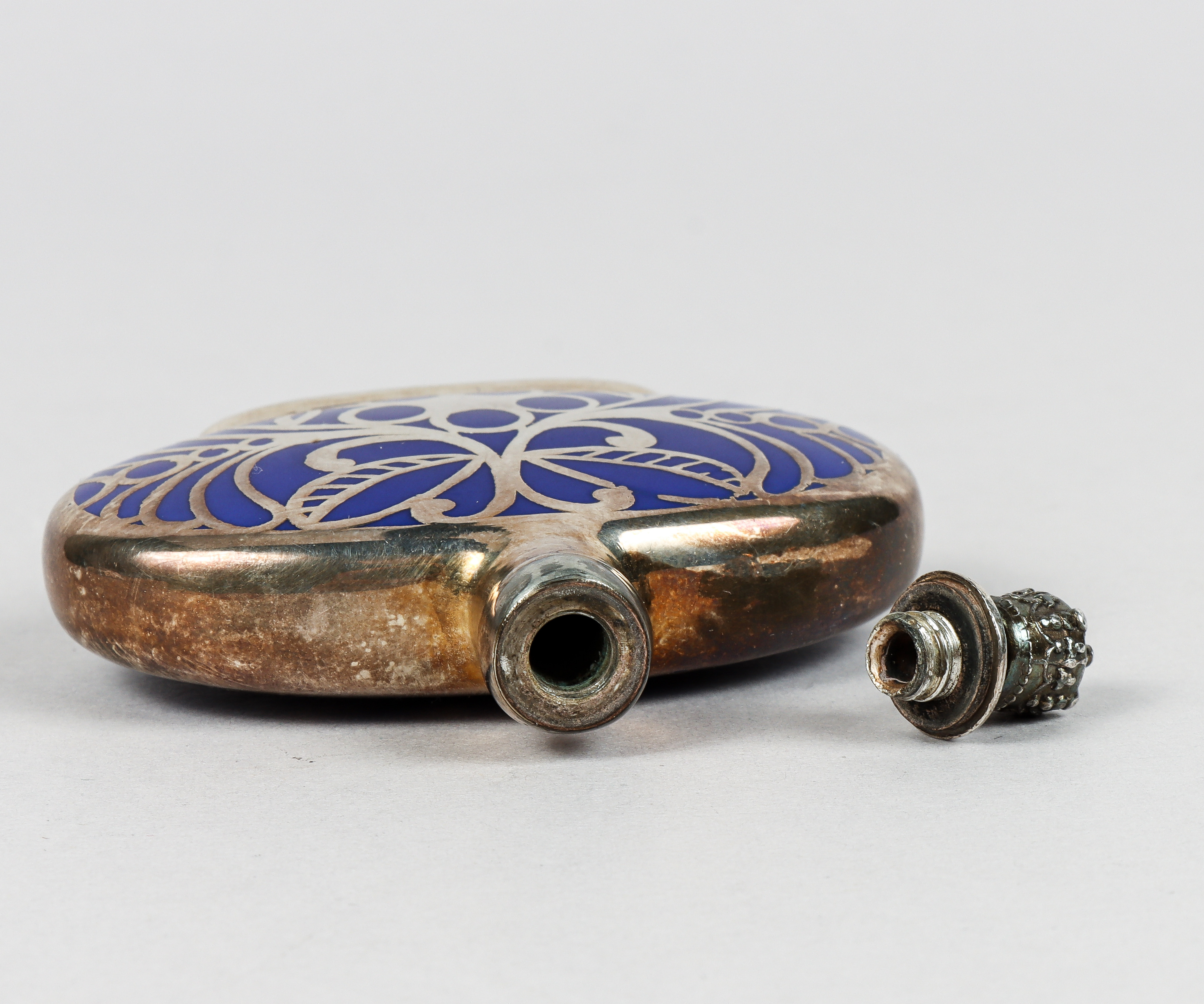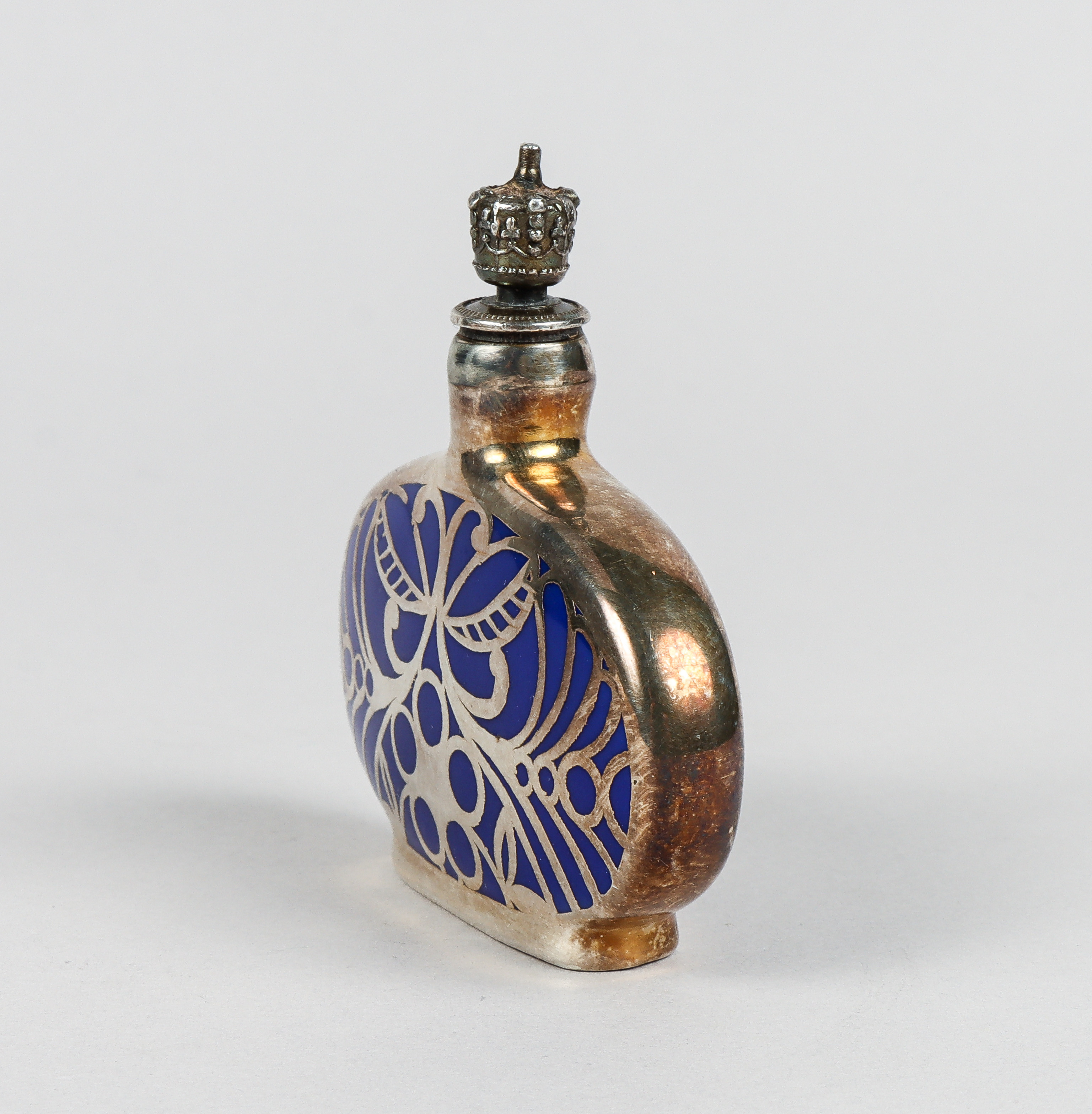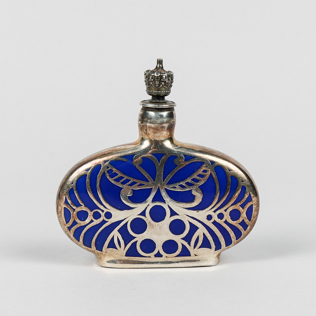4998280. PARFUME FLASKE sølv og porcelæn.
