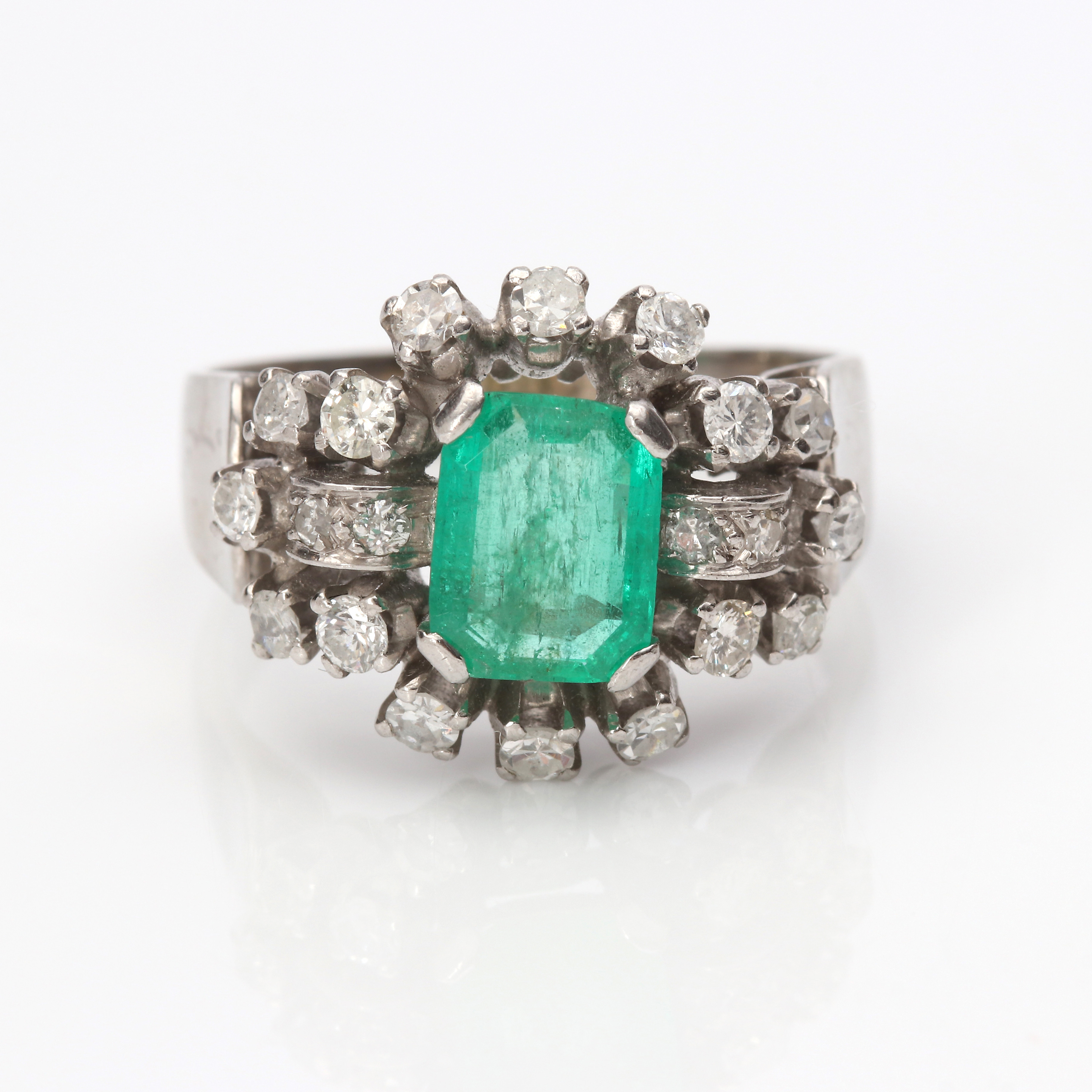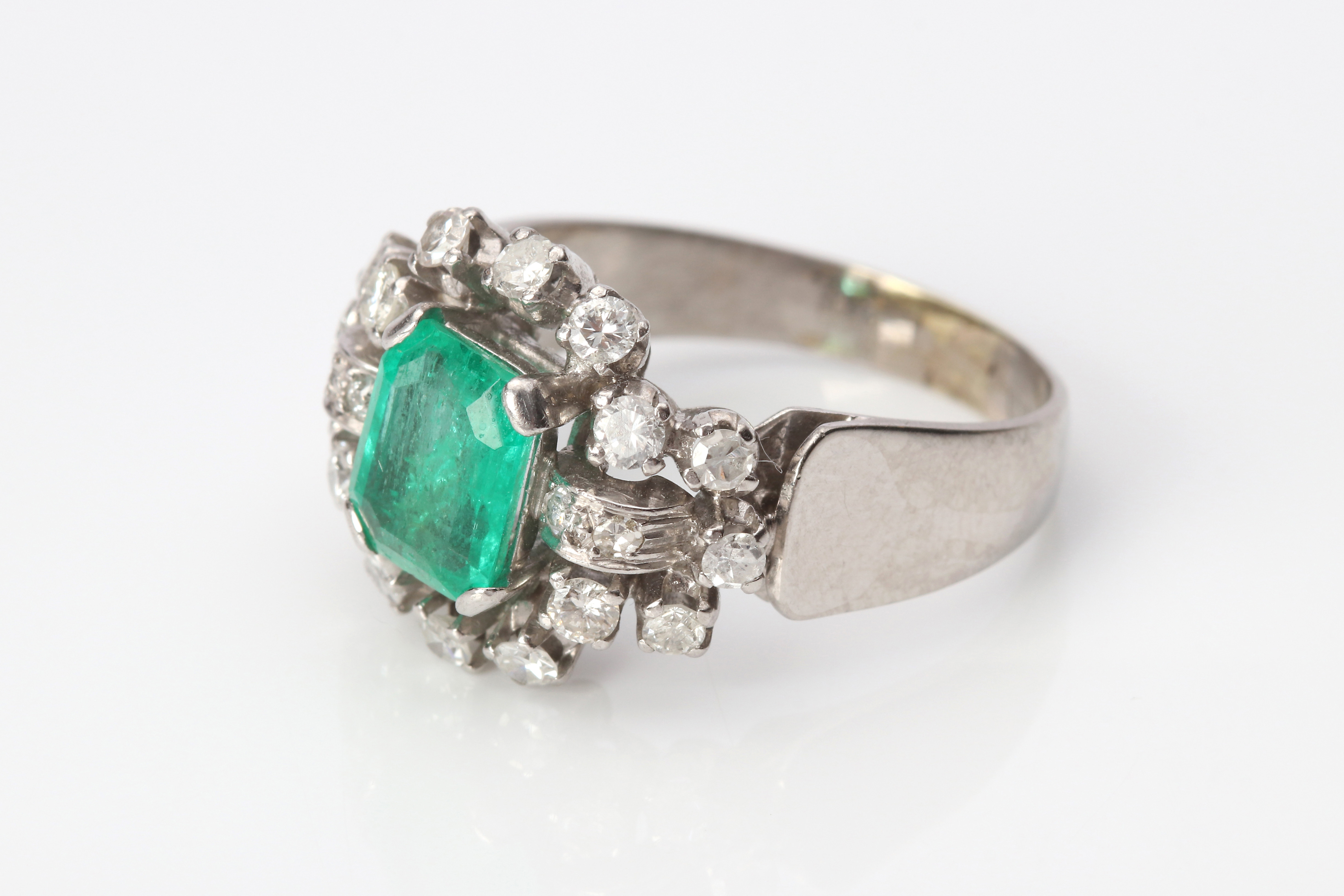 4998356. SMARAGD RING 18K med diamanter.