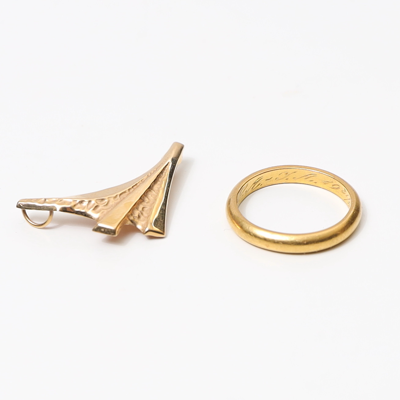 4999210. GULD 2 STYKKER, Ring 23k og vedhæng 18k.