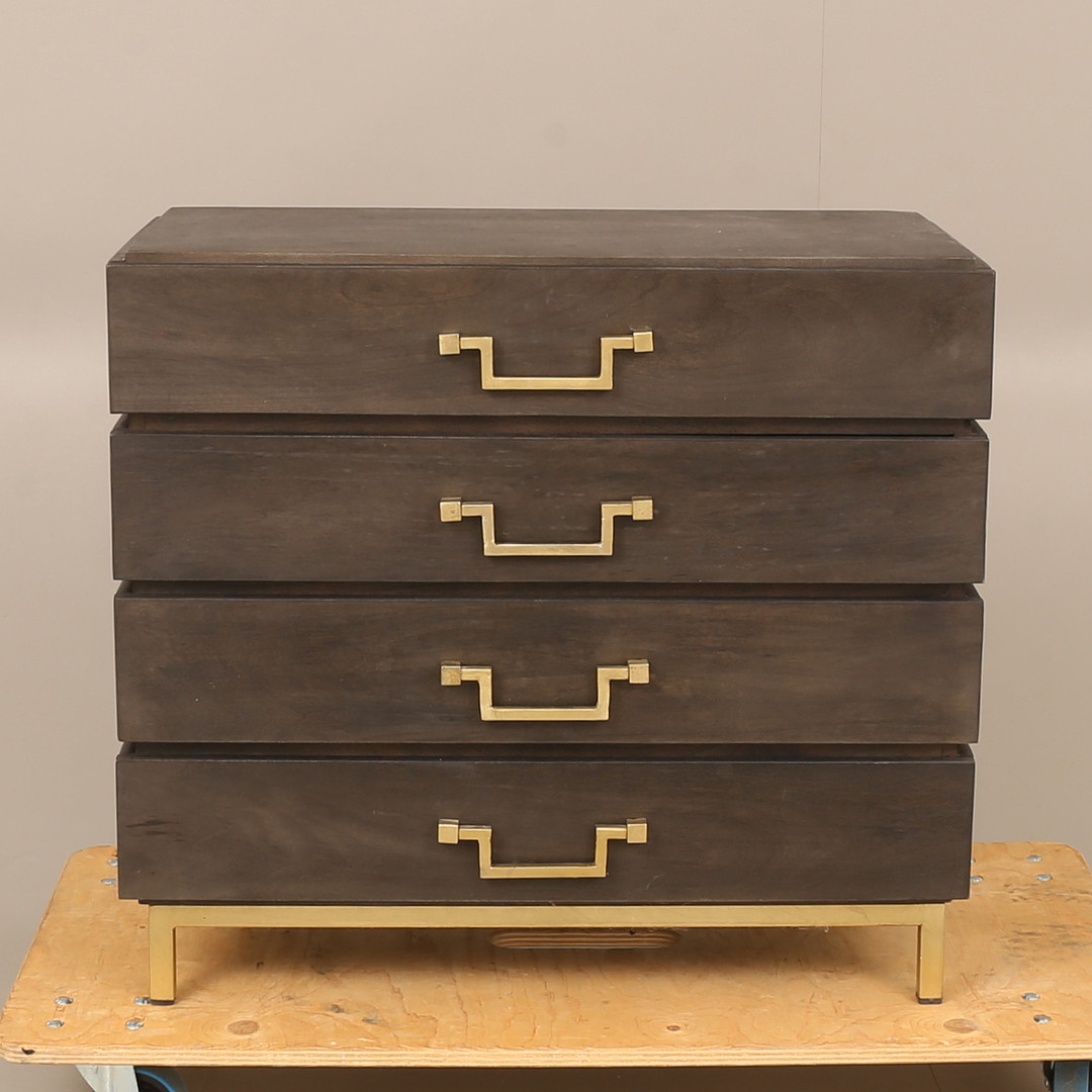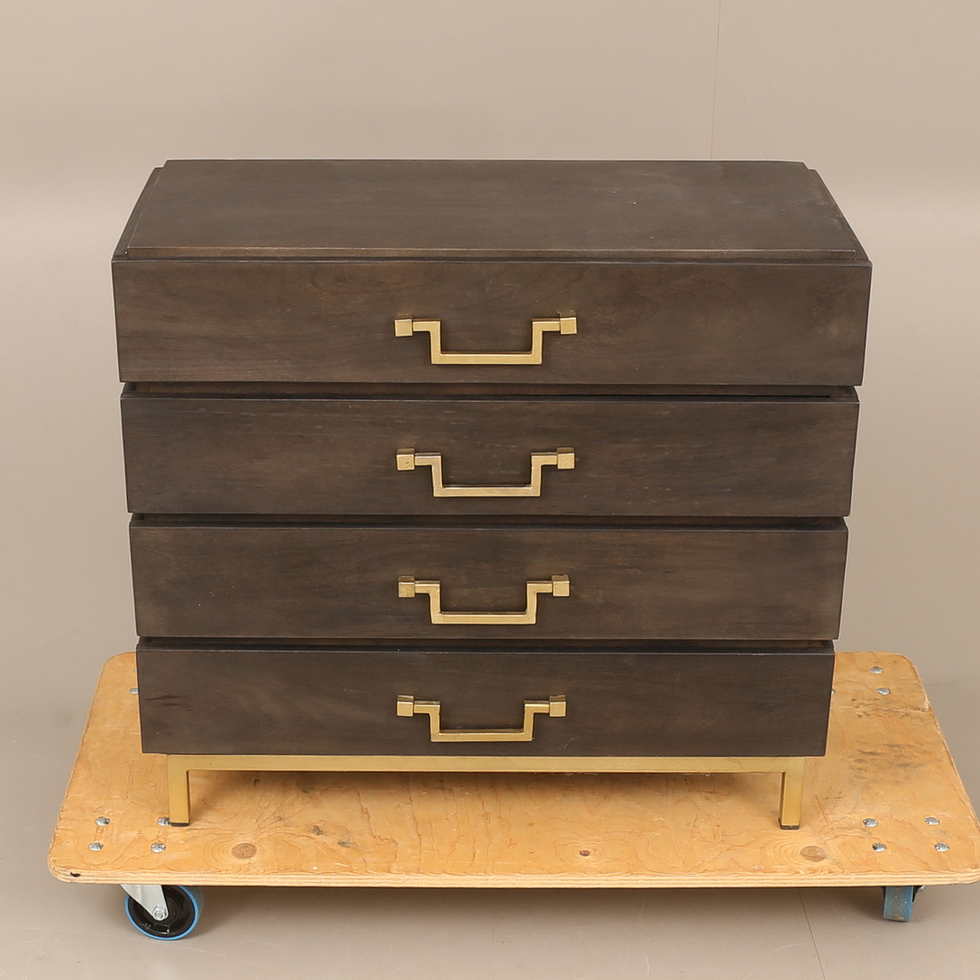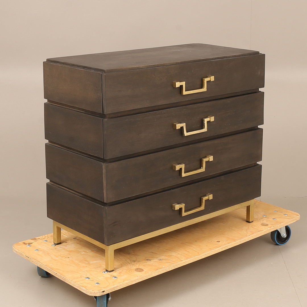 4999288. Kommode af skuffer, træ og metal, moderne.