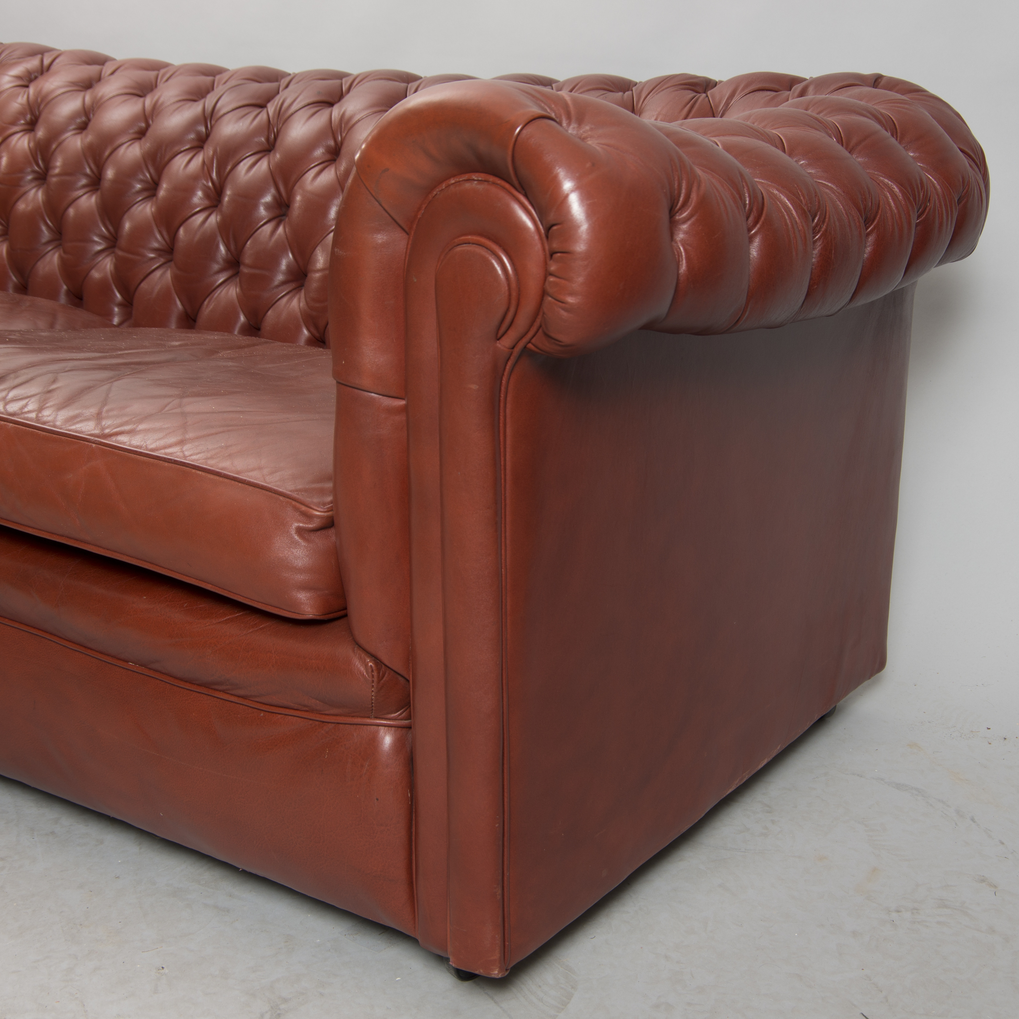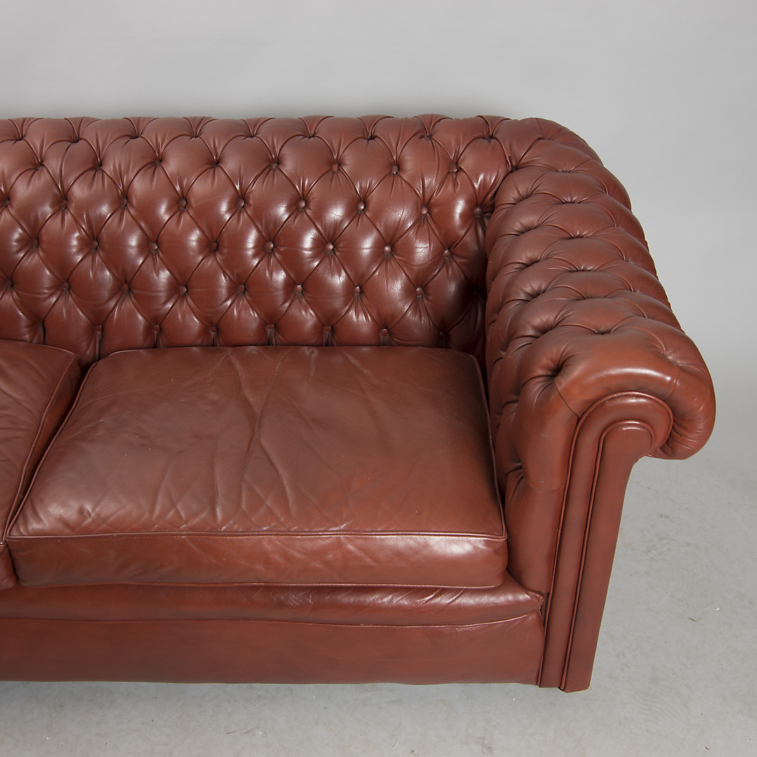 499949. SOFA, brun-rødt læder, model Chesterfield.