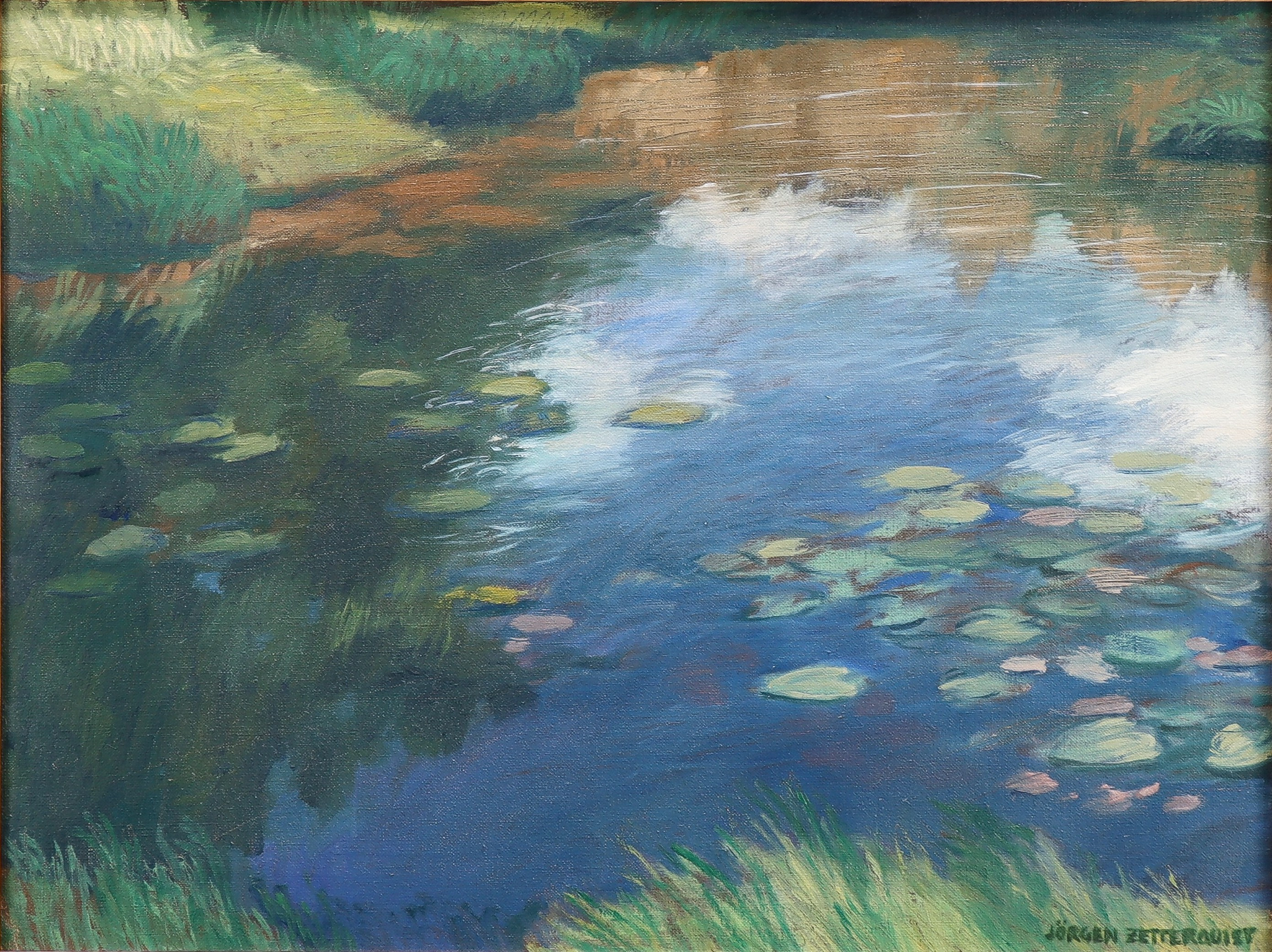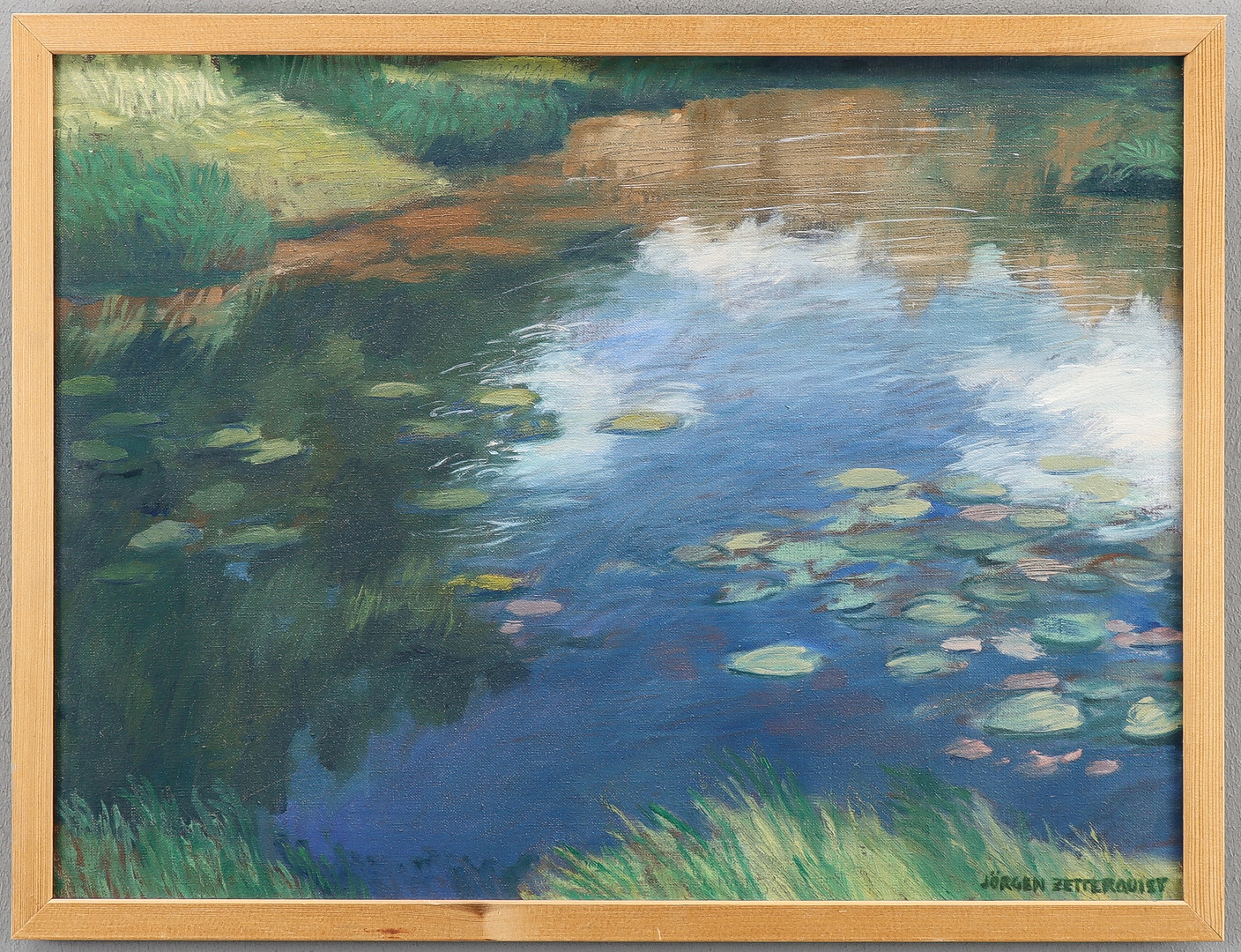 5000586. JÖRGEN ZETTERQUIST. Vattendrag med näckrosor.