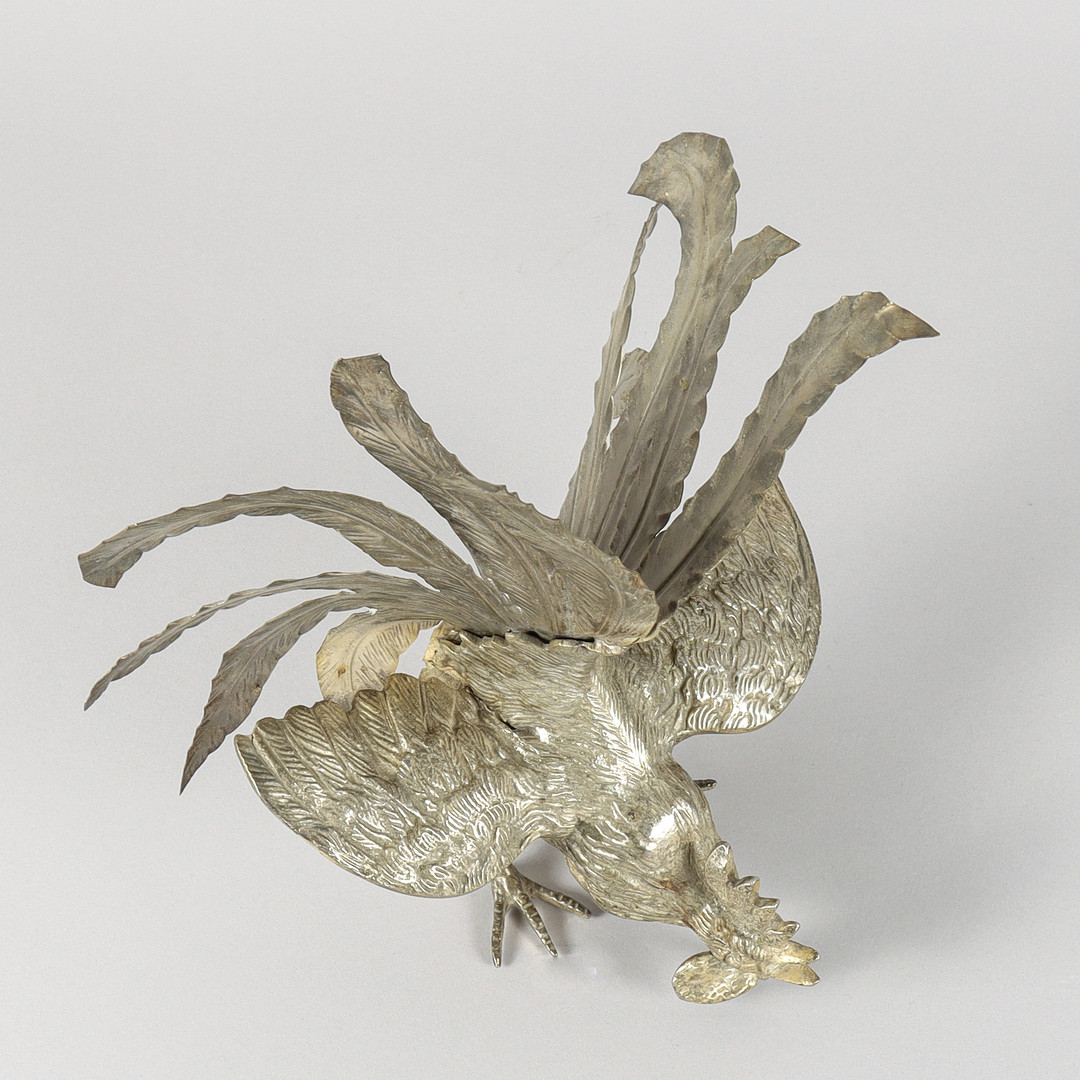 5000622. BORDDEKORATION Hane, hvidt metal, stor.