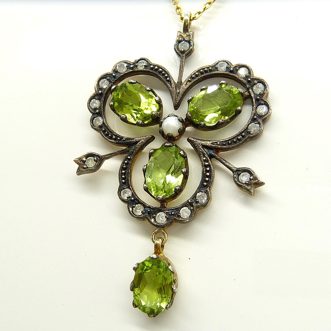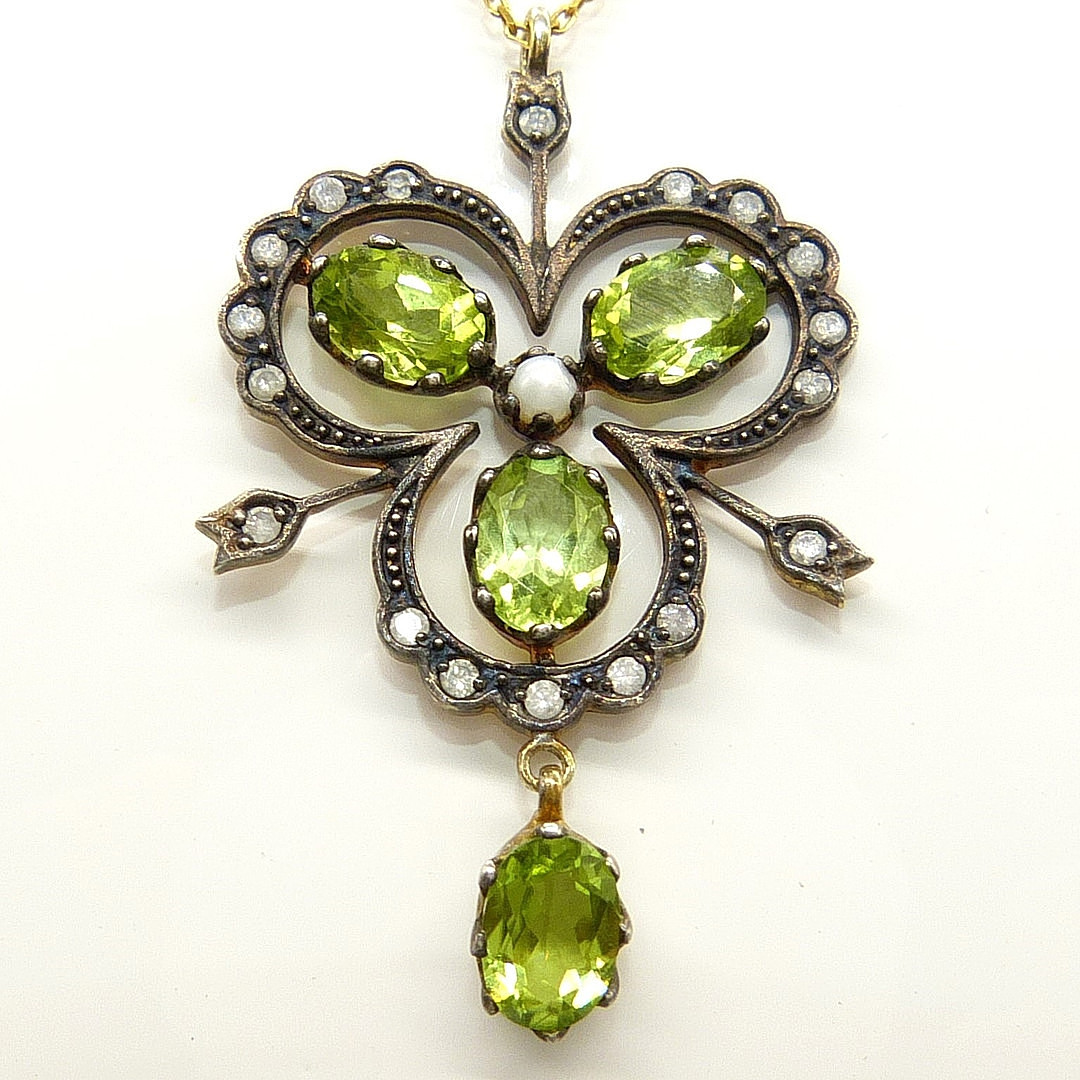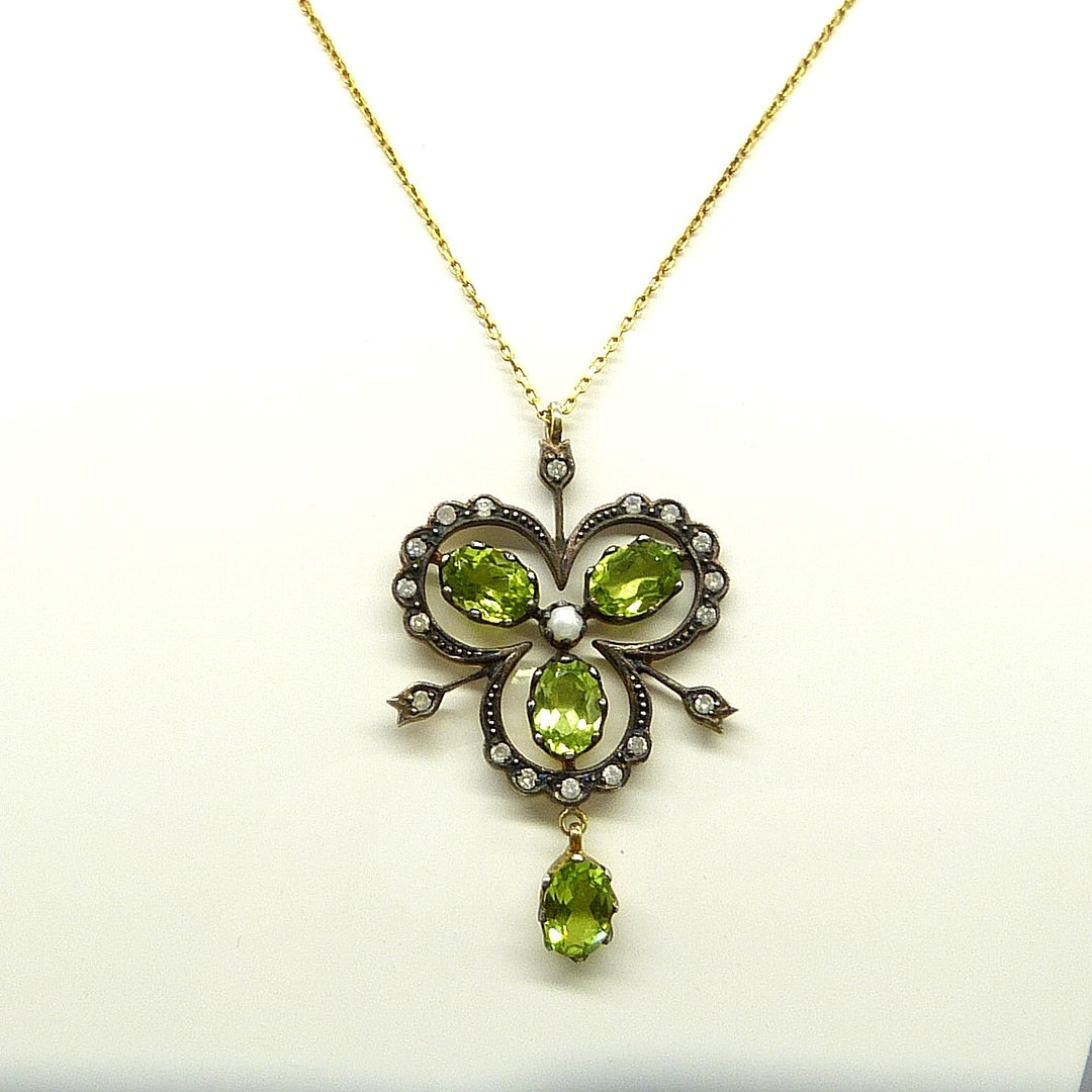 5000928. DIAMANT, PERIDOT & PERLE HALSKÆDE.
