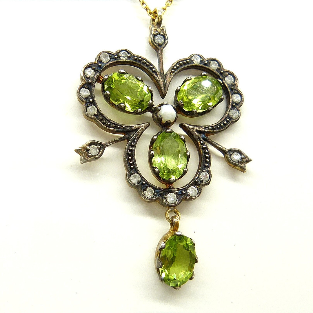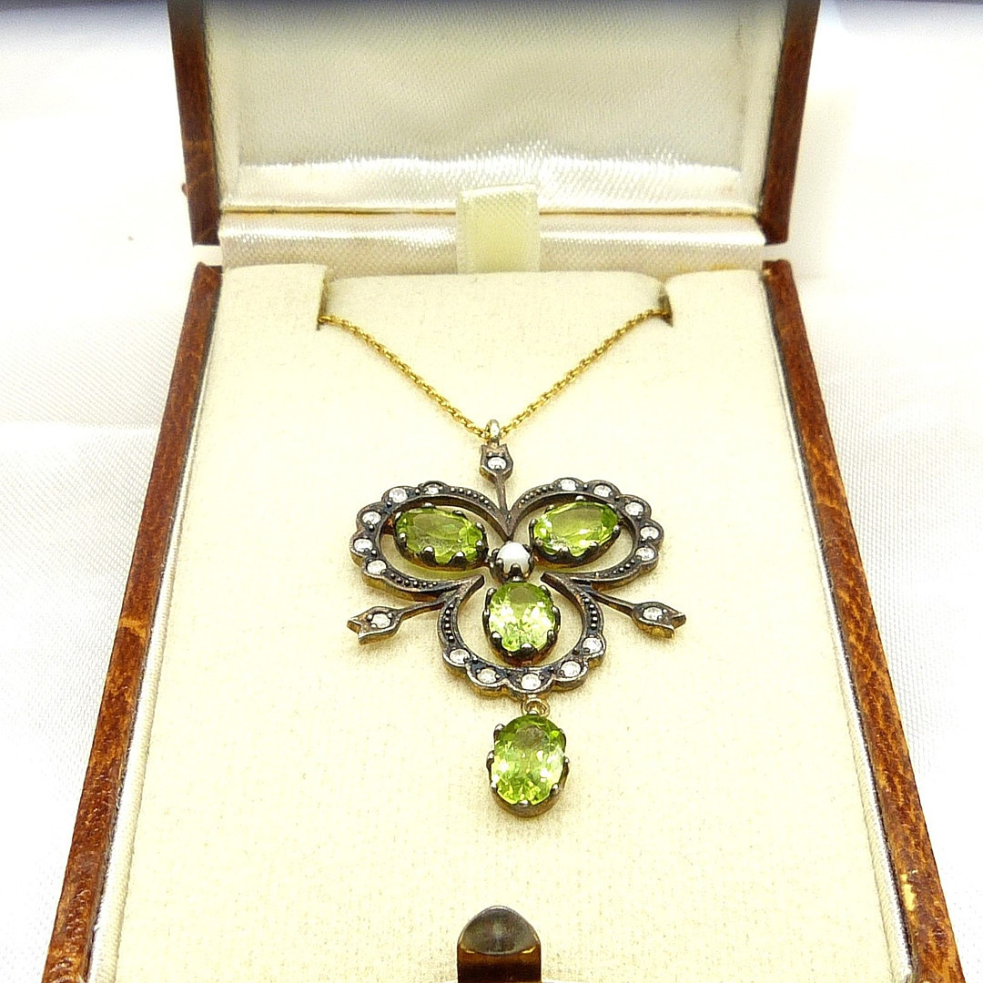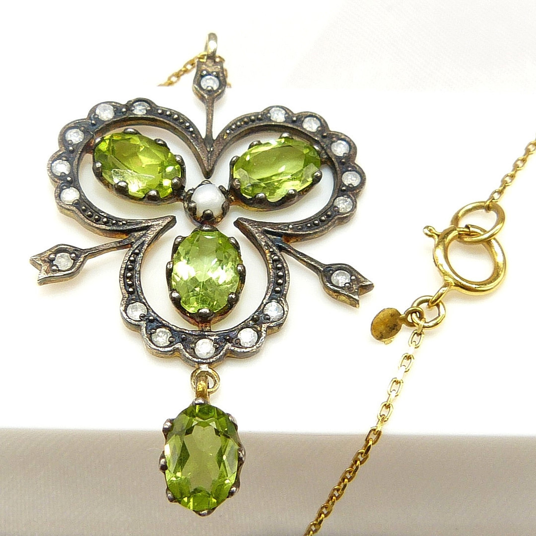 5000928. DIAMANT, PERIDOT & PERLE HALSKÆDE.