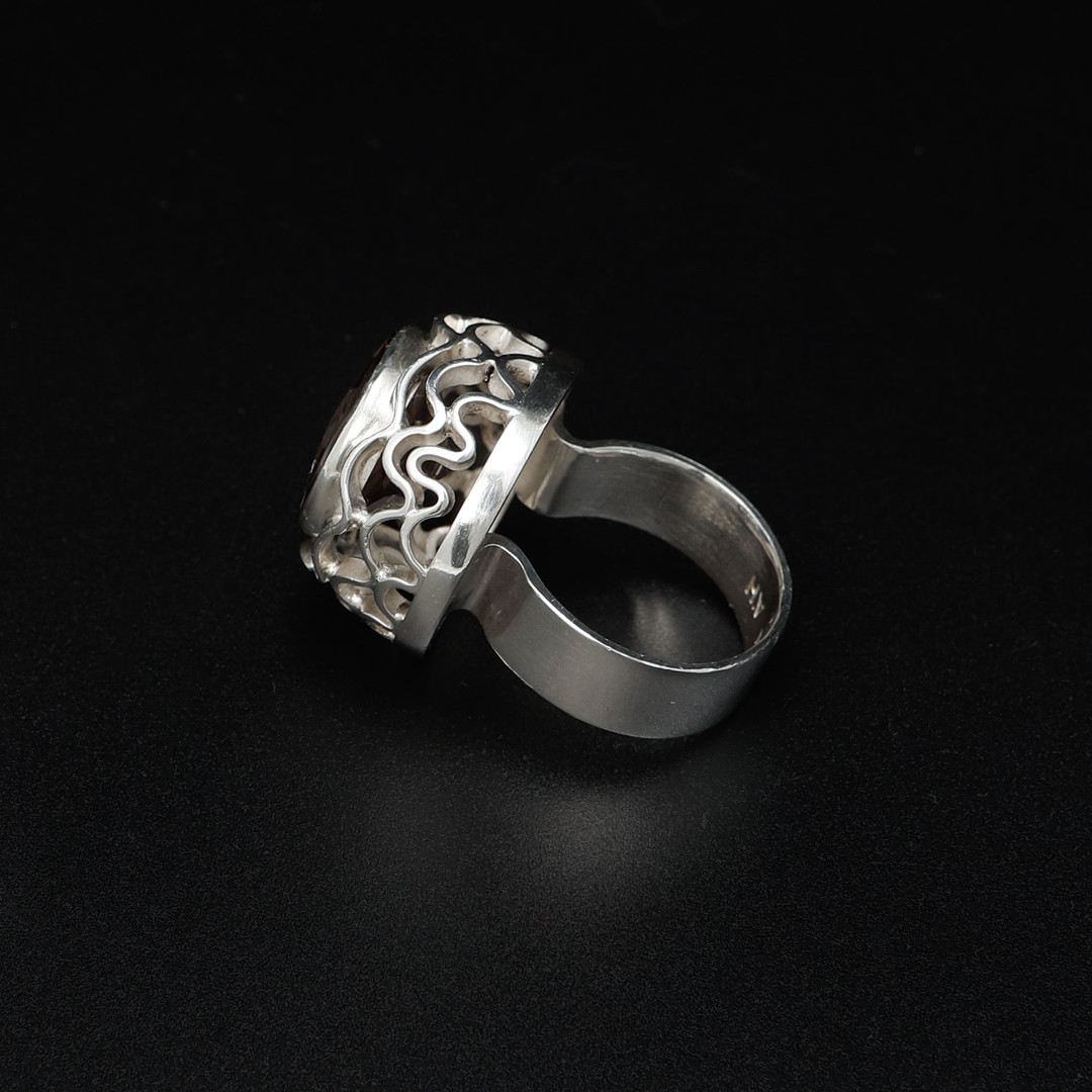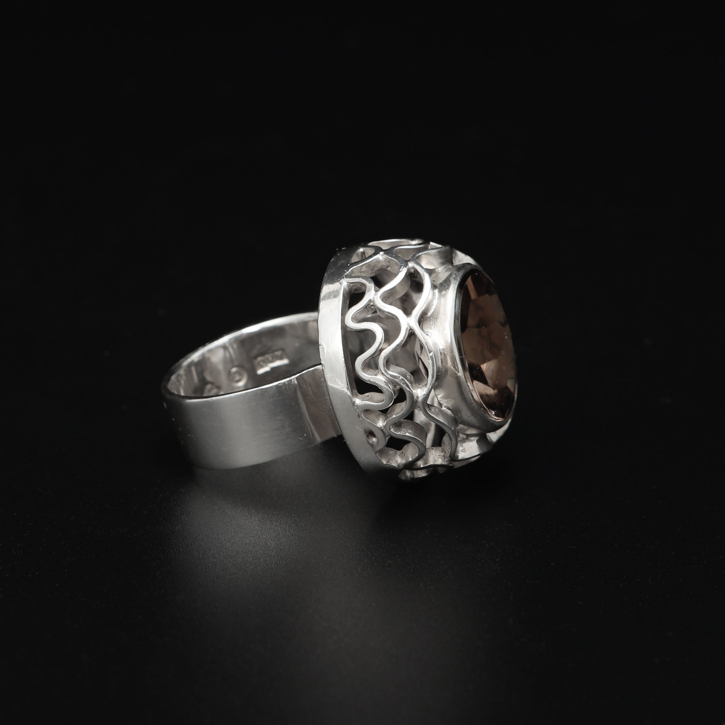 5001462. ANDERS HÖGBERG. Ring, sølv og røgkvarts, Göteborg, 1972.