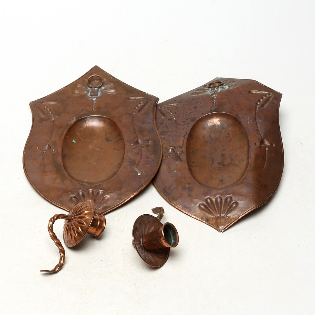 5001978. Væglysestager, et par i jugendstil, kobber.