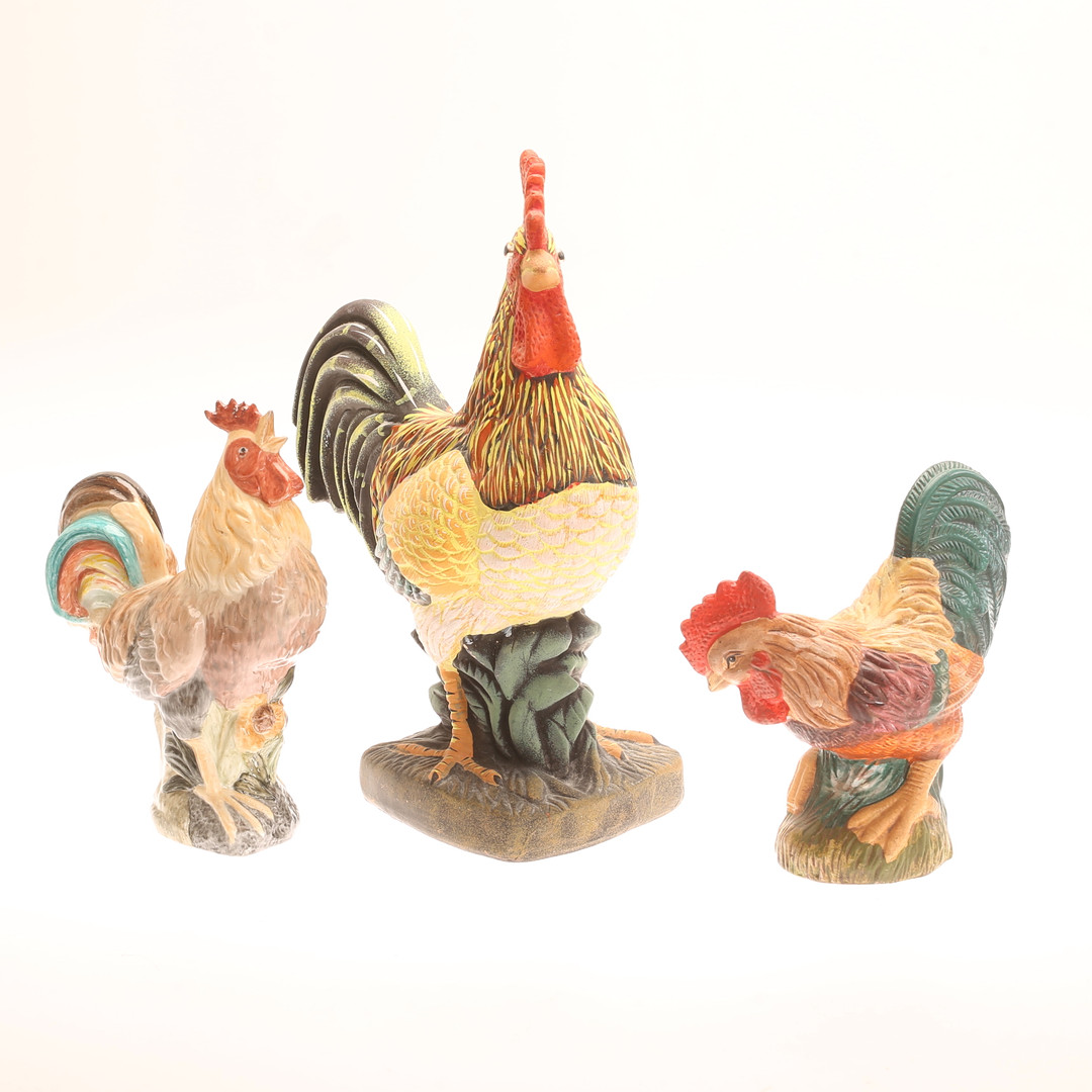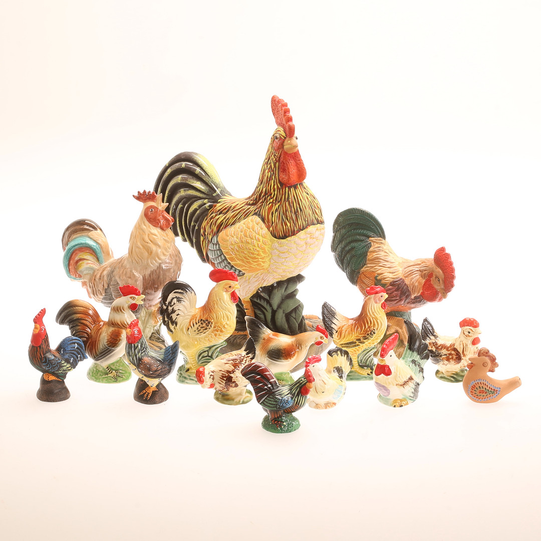 5002928. FIGURER, 15 stykker, haner, keramik.