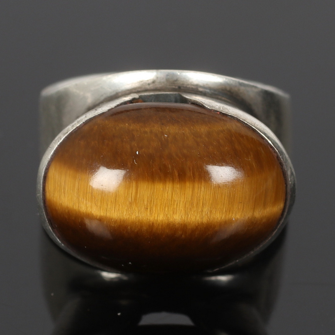 5003275. (6C13) RING, sølv med tigerøje, 20. årh.