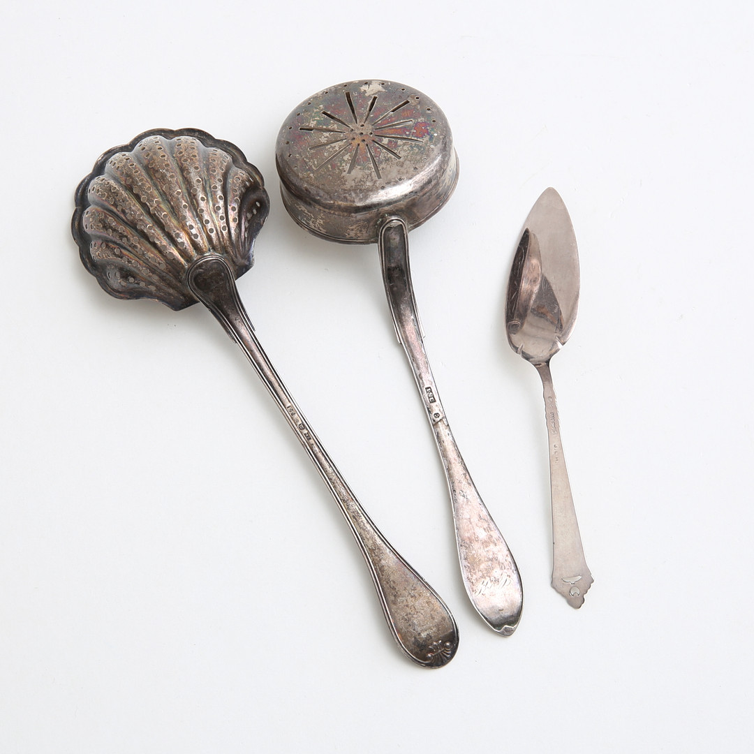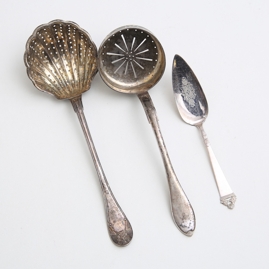 5003344. SPRINKLER, 2 stk, og KAGESPADE, sølv, 127 gram.