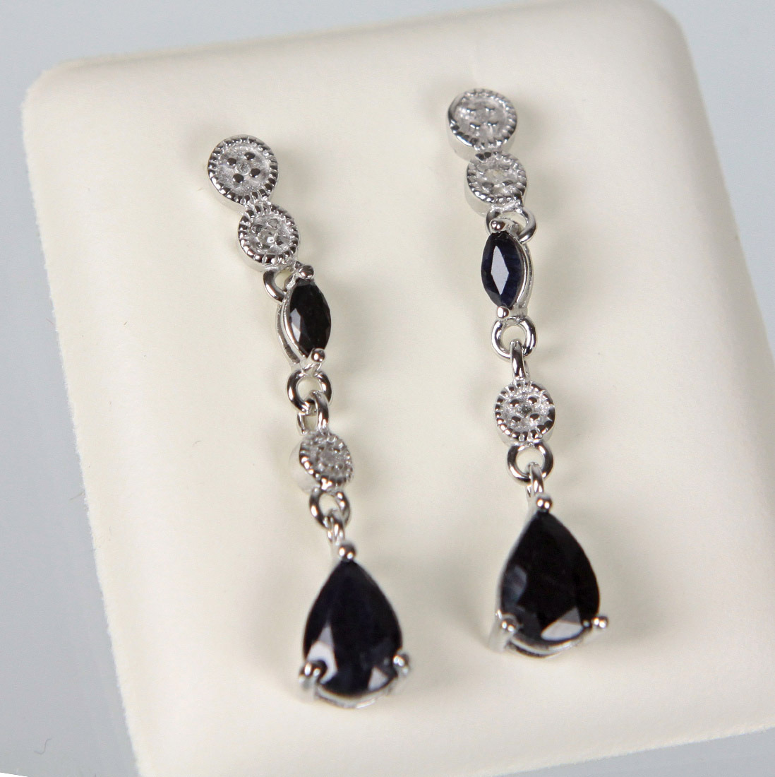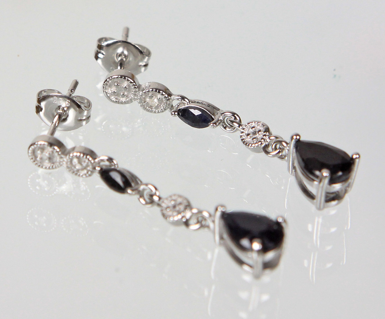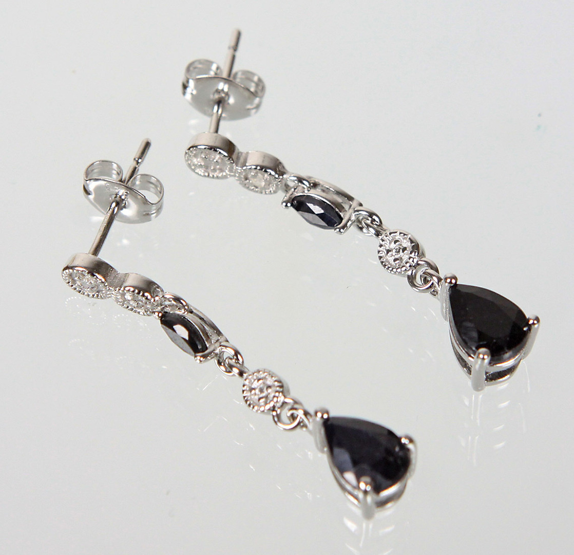 500429. SAPPIR ØRESTOPPER MED DIAMANT 925 SØLV.