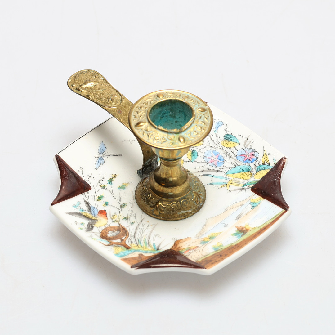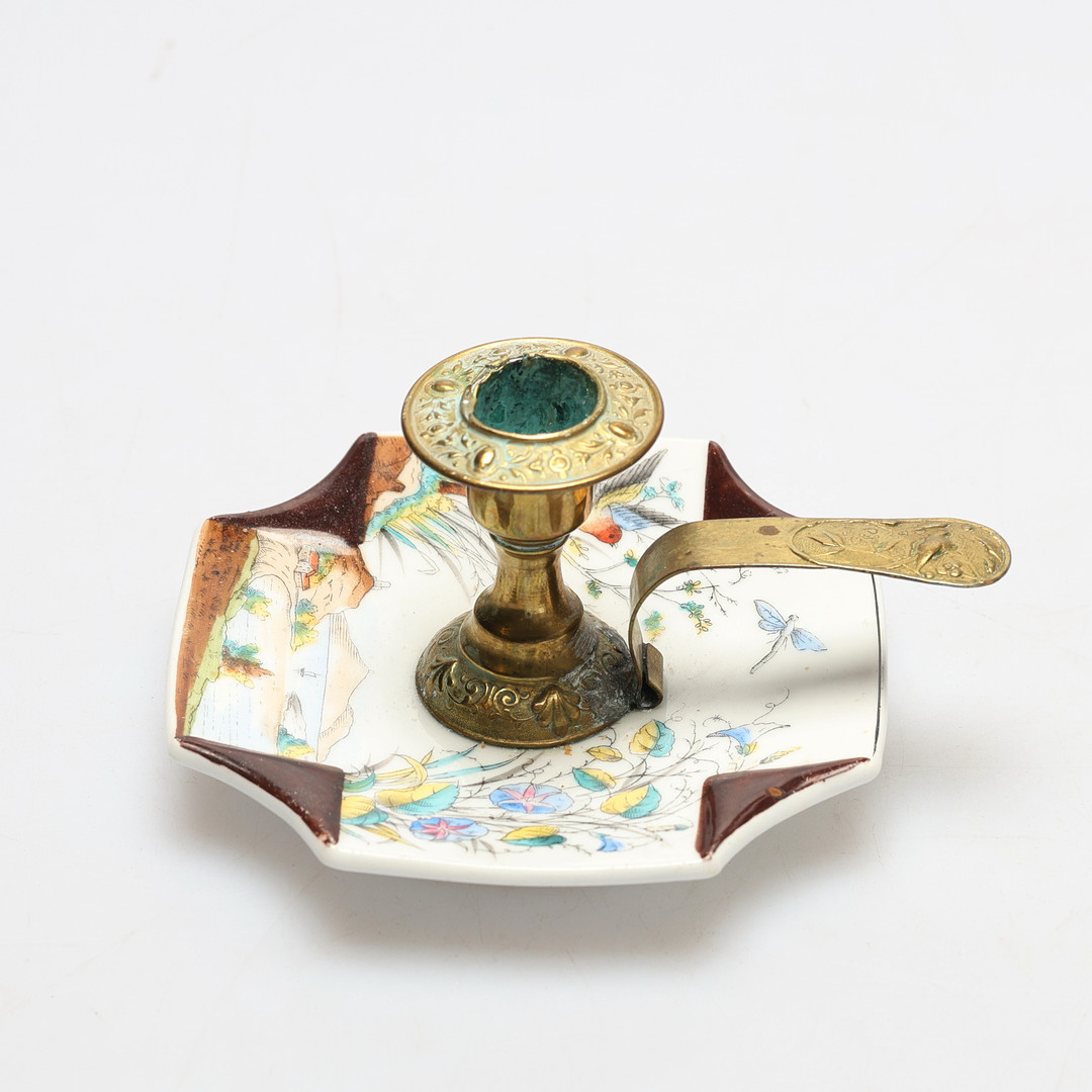 5005802. LYSESTAGE, messing, porcelæn, 20. årh.