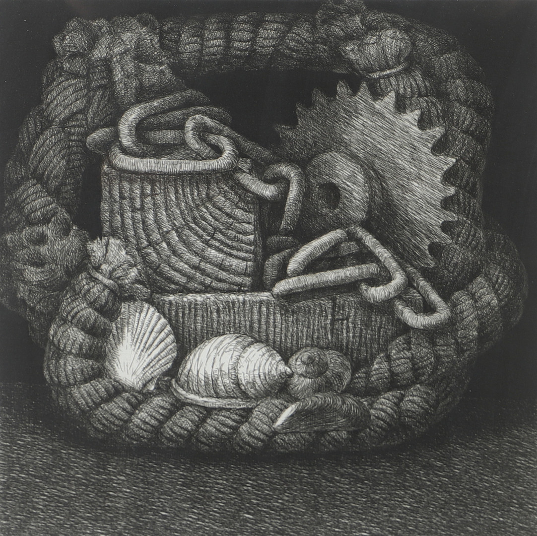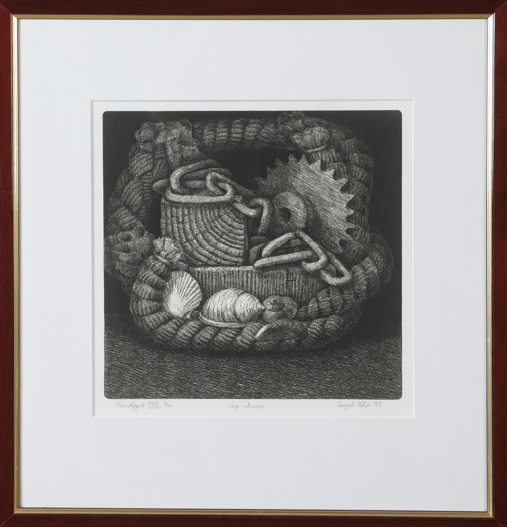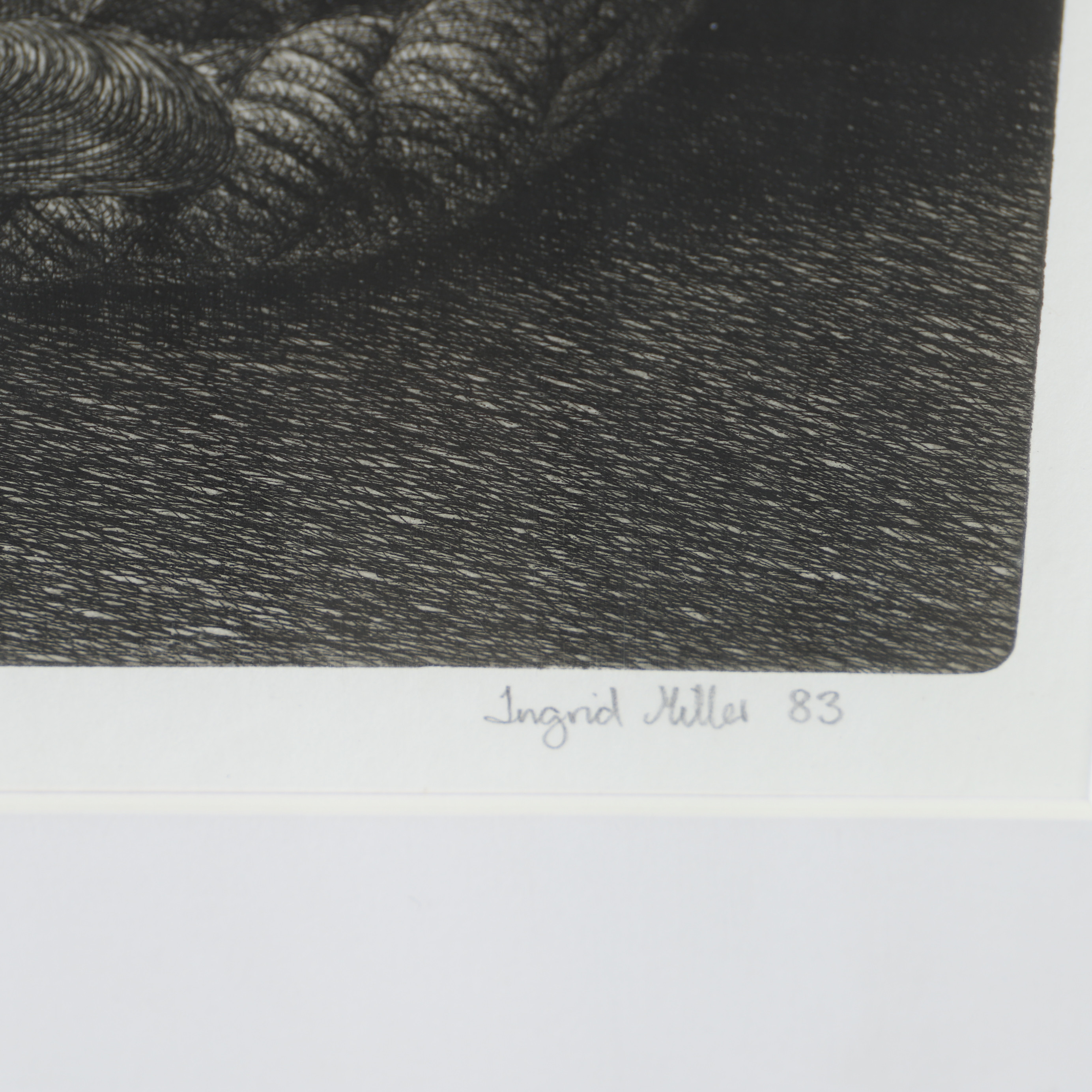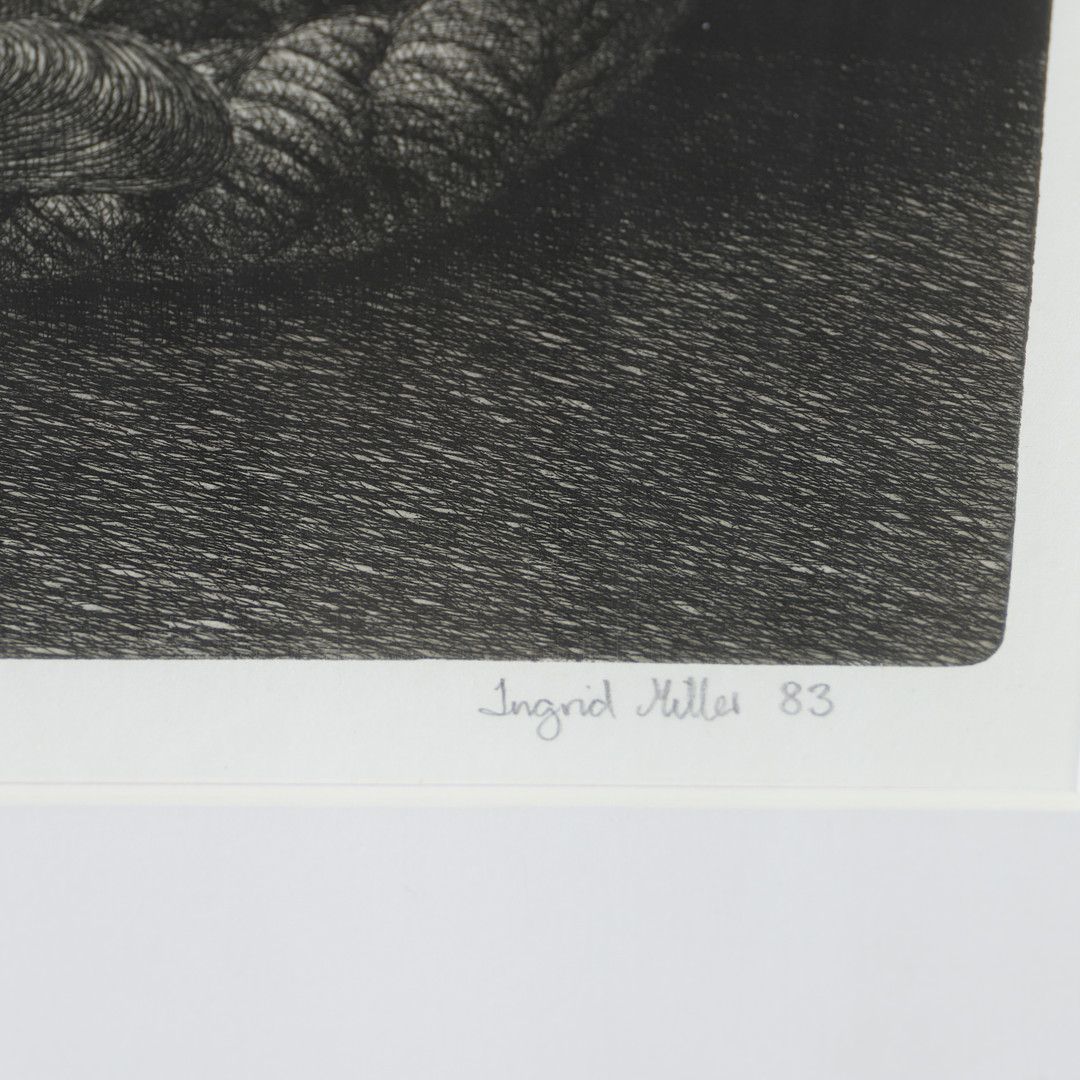 5009712. INGRID MILLER. „Strandfynd“, ætsning, signeret -83.