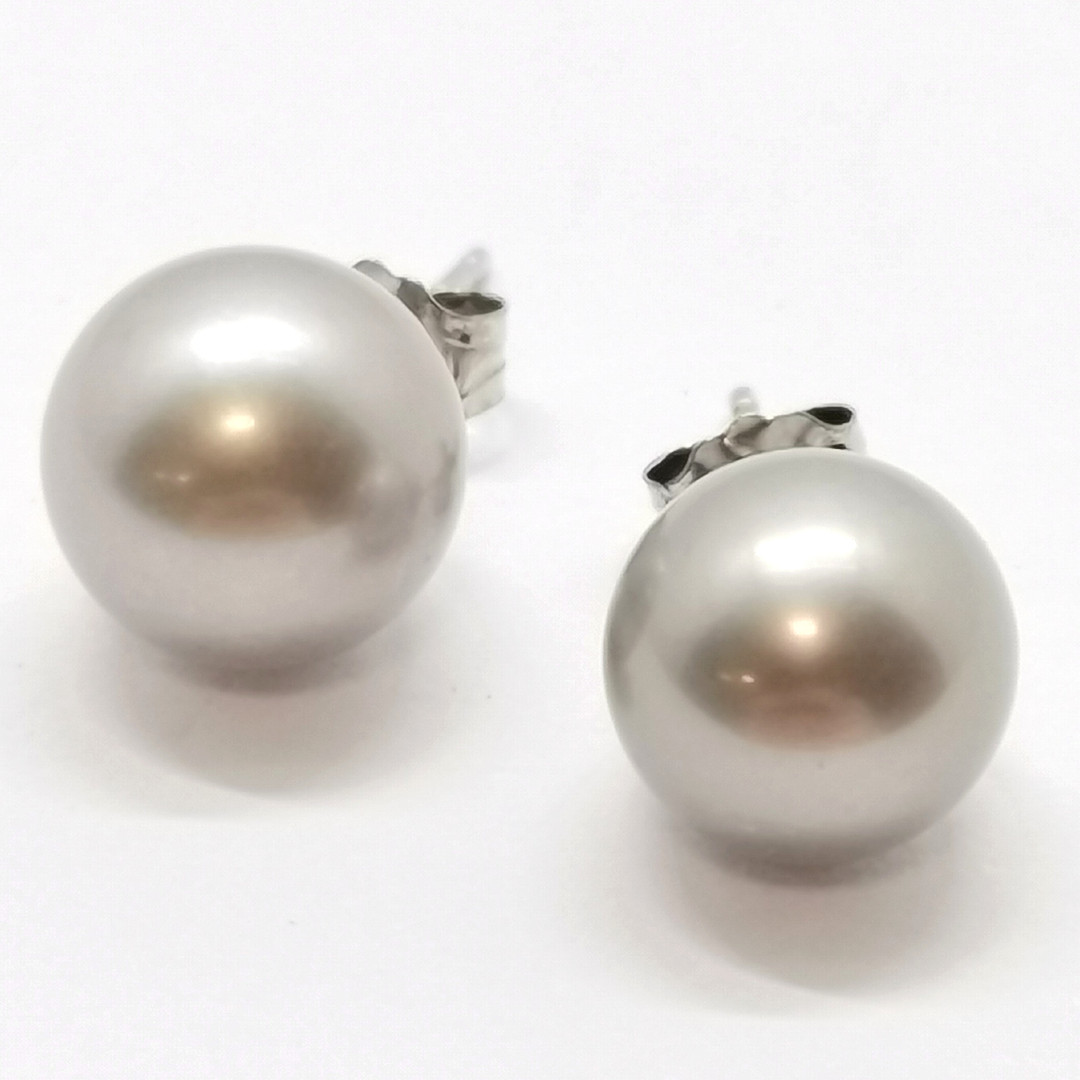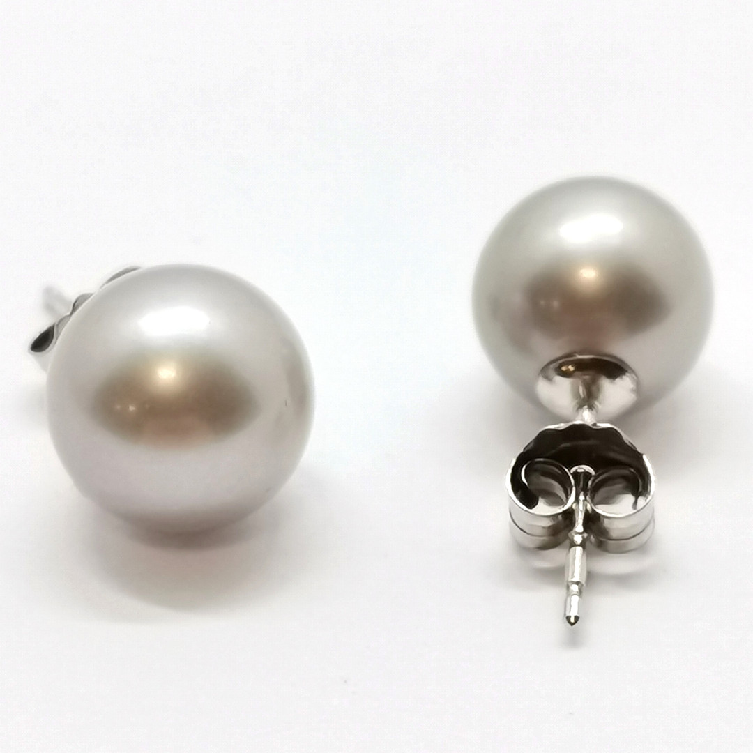 5010002. 9ct HVIDGULD GRÅ PERLEØRERINGE.