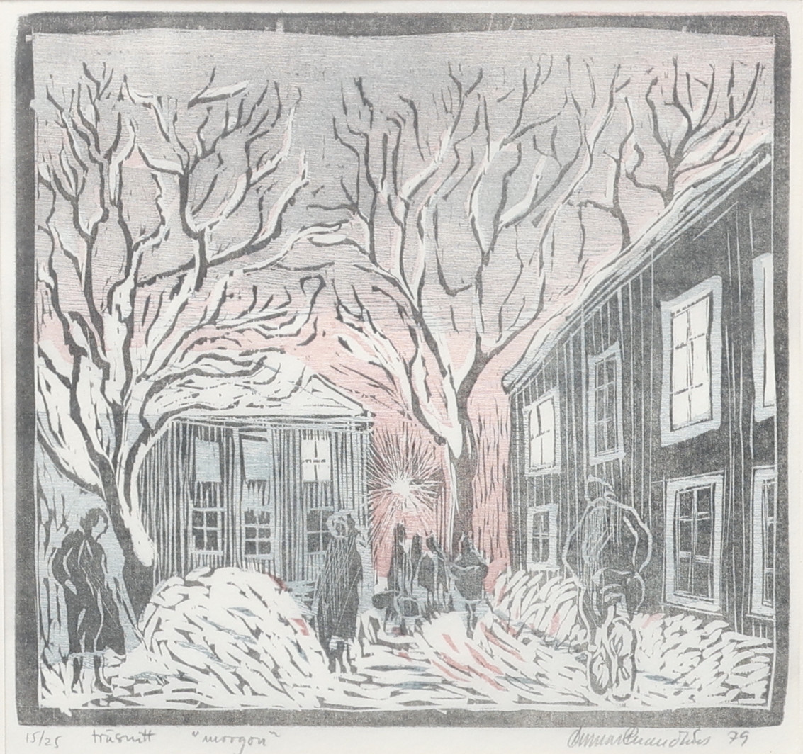 5010670. UIDENTIFICERET KUNSTNER. Træsnit, „Morrgon“, signeret.