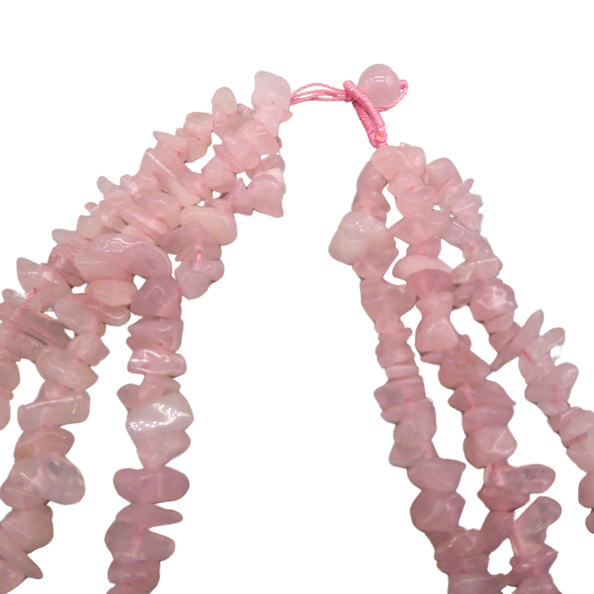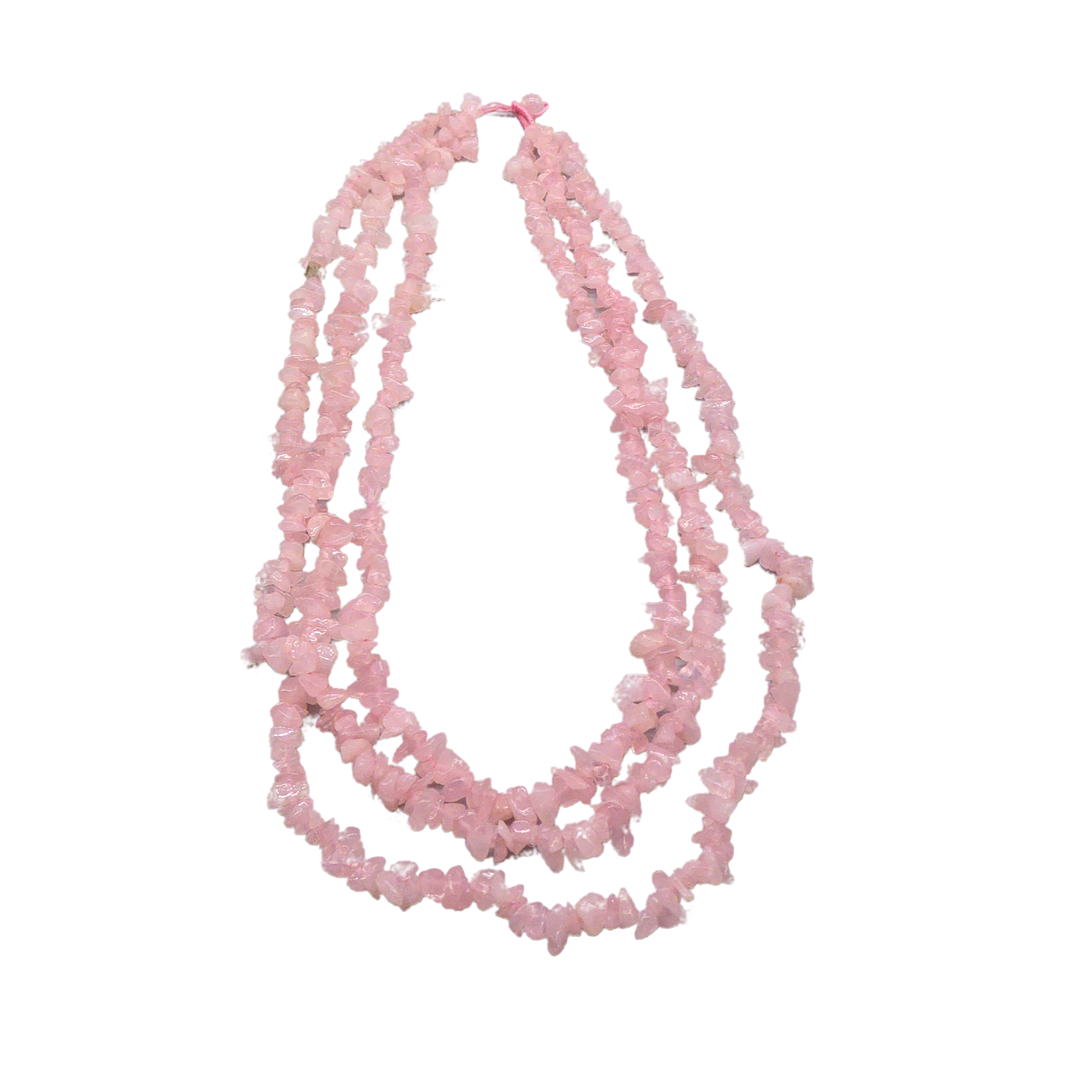 5012233. 3-STRENGET ROSENKVARTS SPLINTER HALSKÆDE.