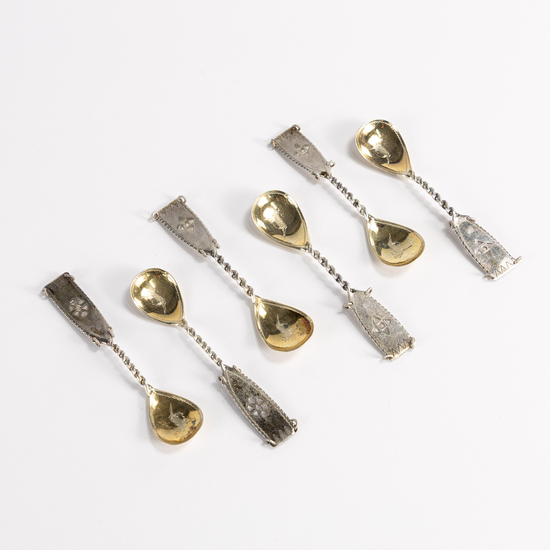 5012333. SKEER, 6 stk., sølv, "Lappskedar".