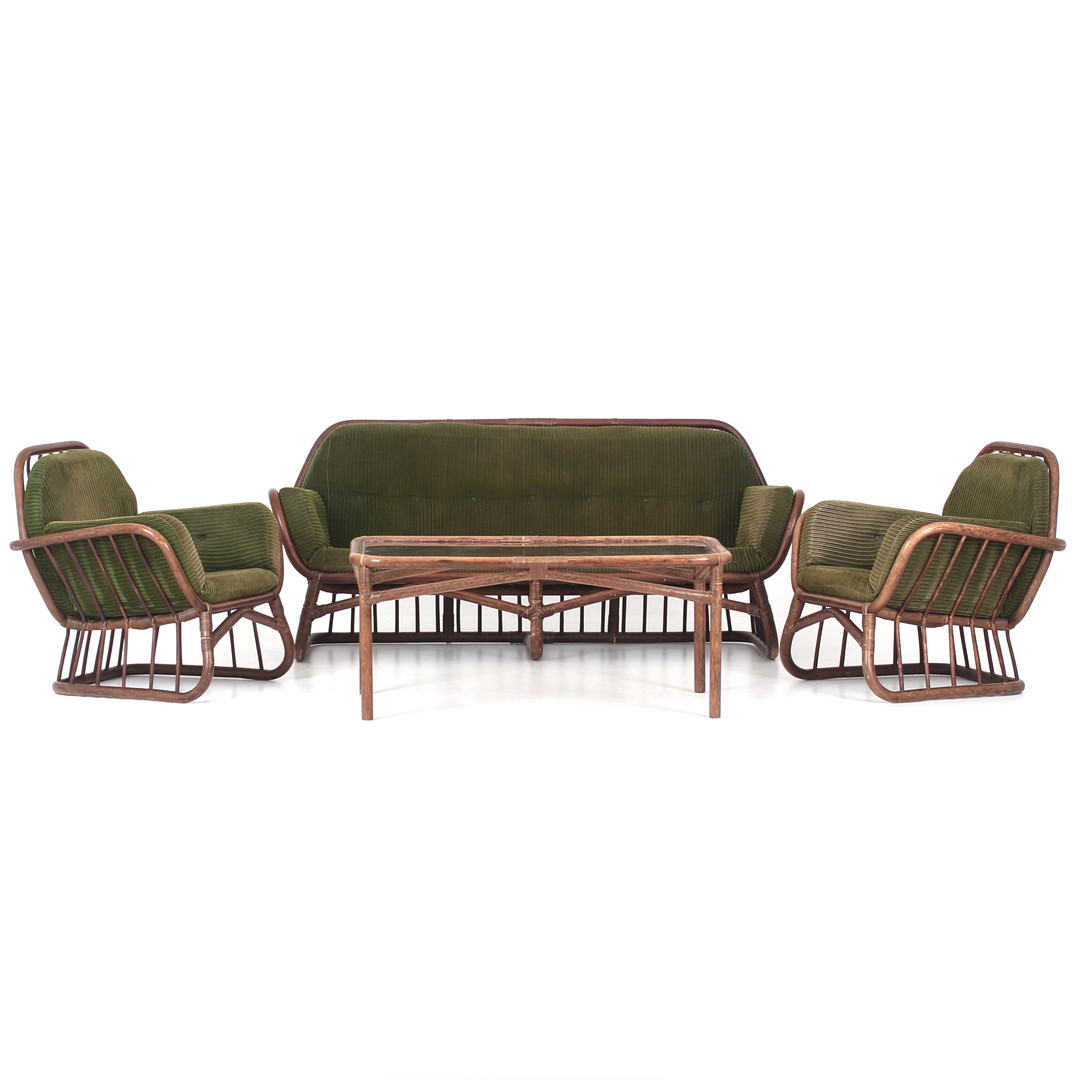 5014789. SOFASÆT, 4 dele, bambus og rotting, 20. århundrede.