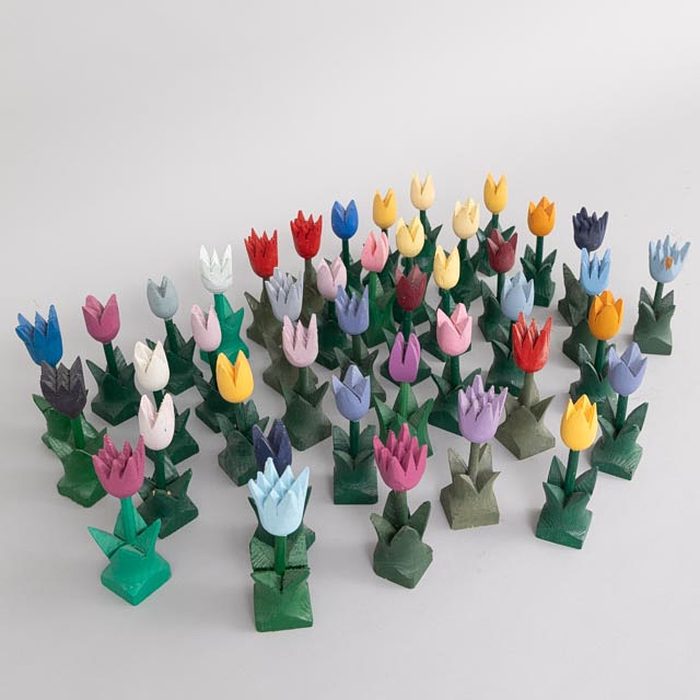 5015103. PARTI TULIPANER, 42 stk, malet træ.