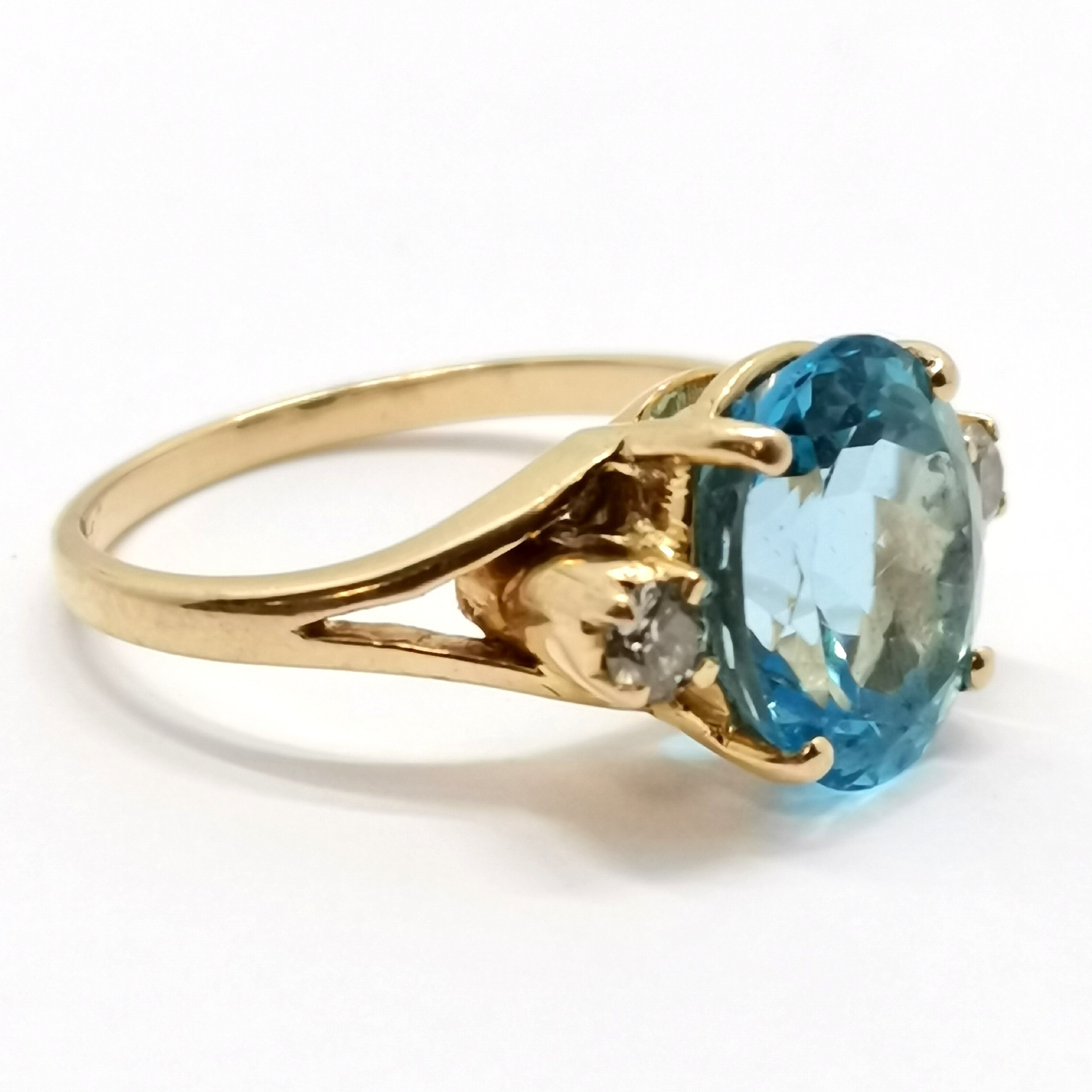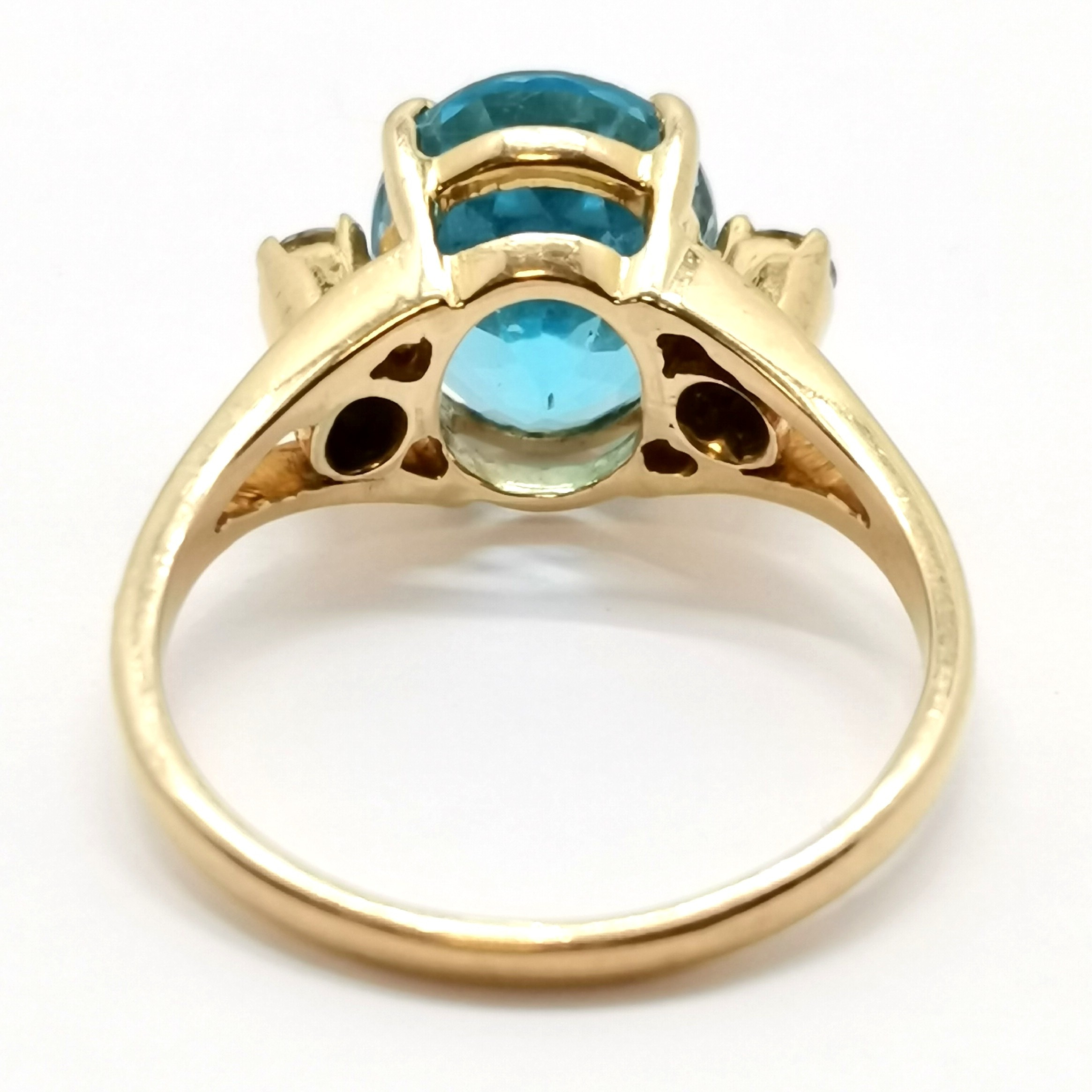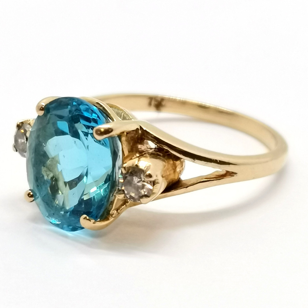 5015203. 18ct GULD BLÅ TOPAS & DIAMANTRING.
