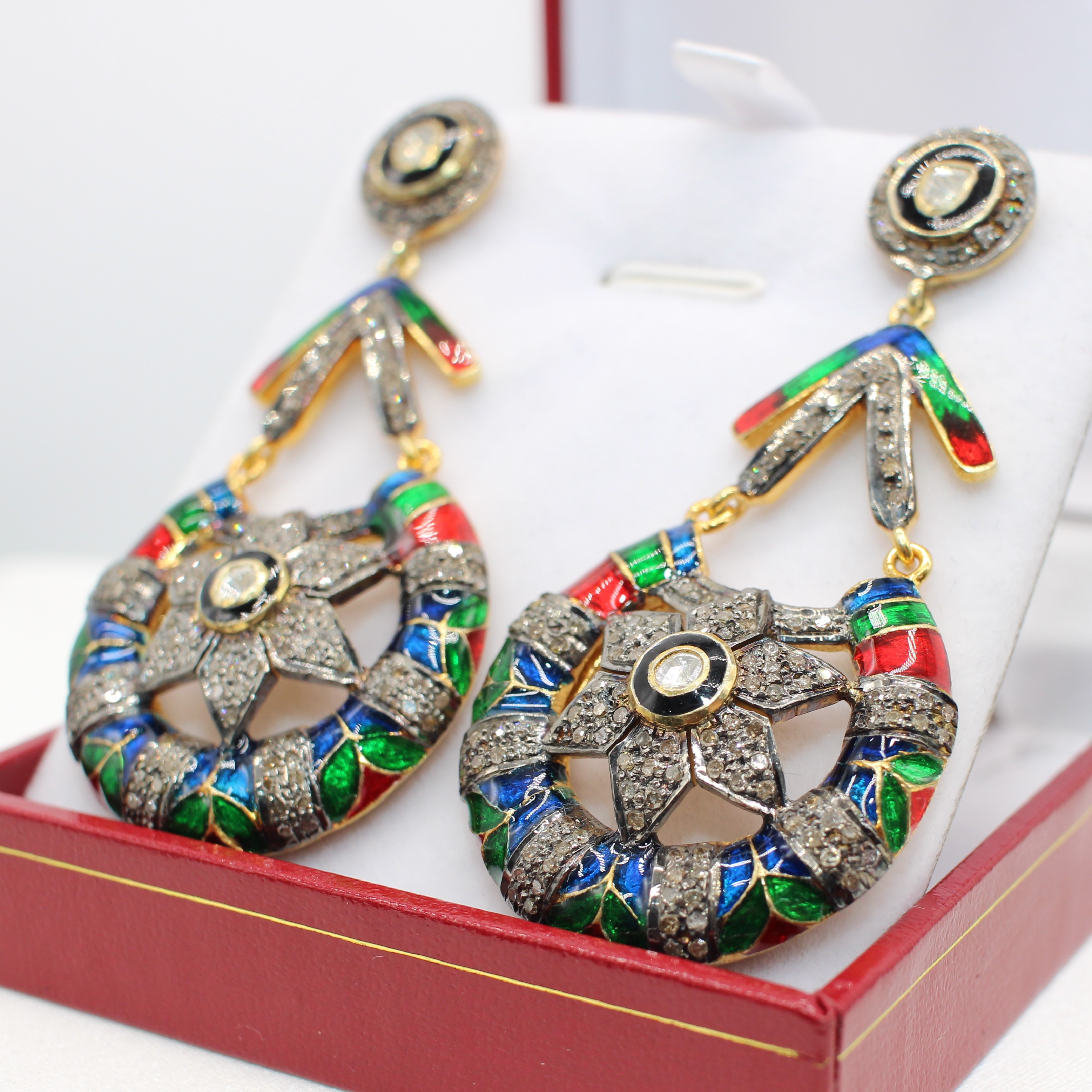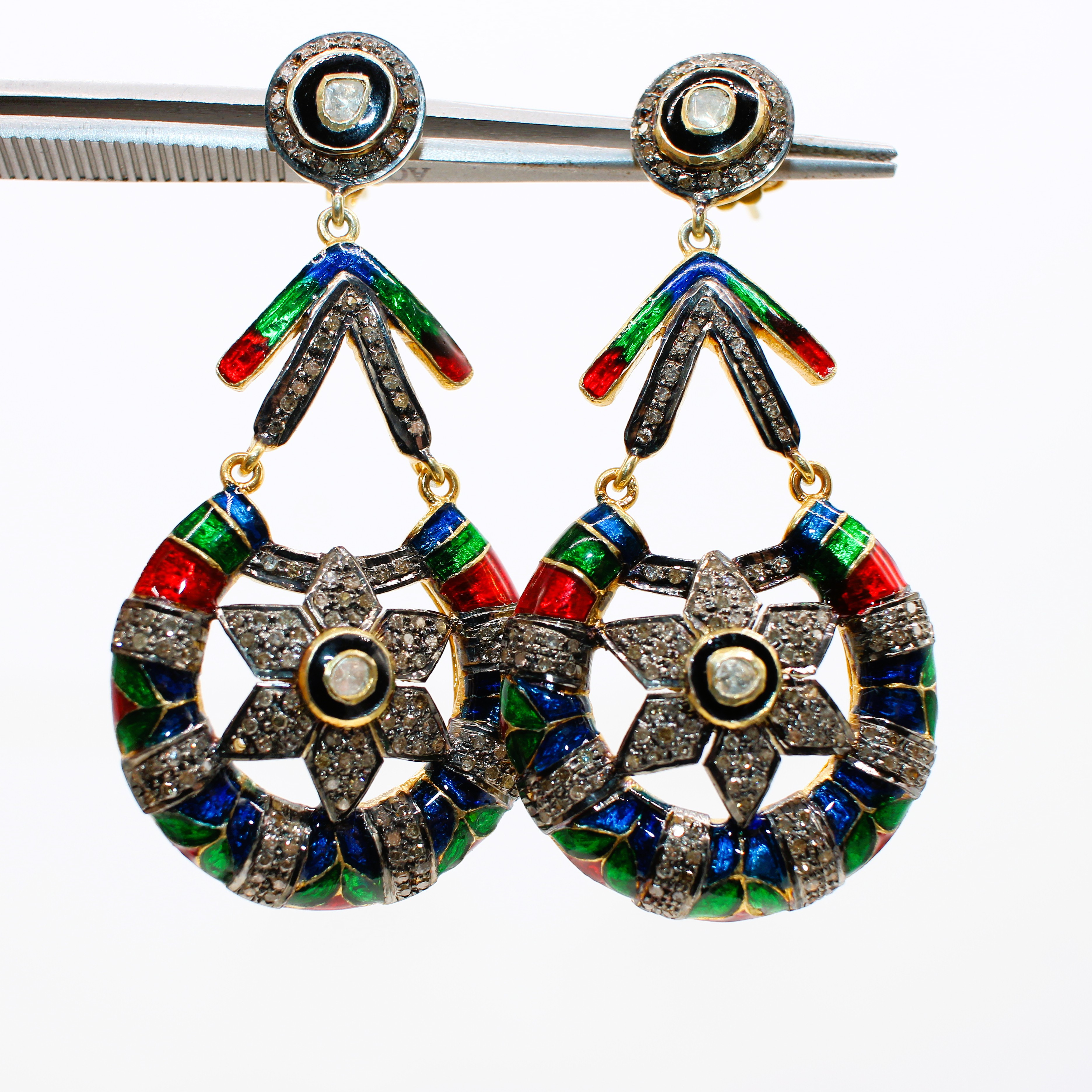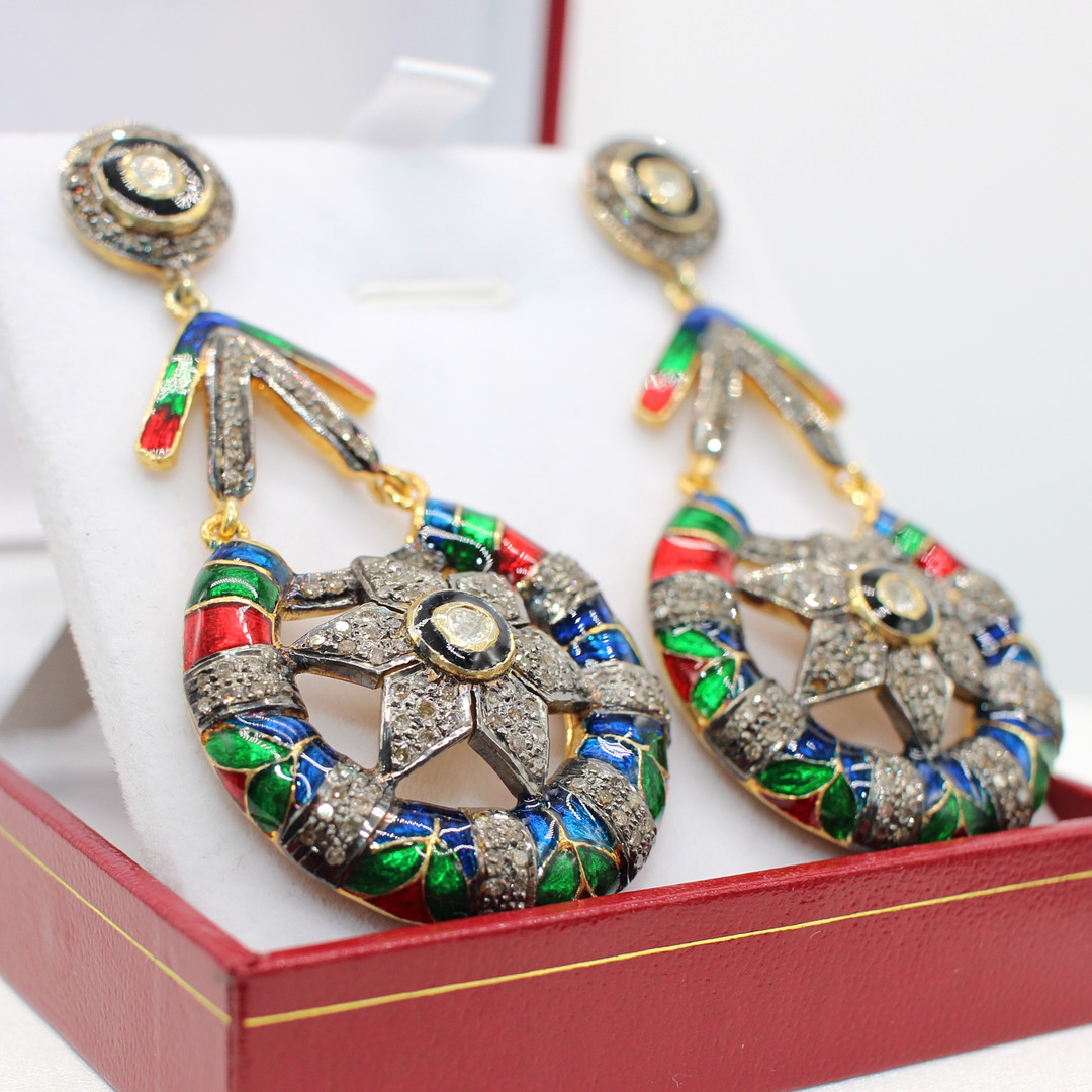 5015265. STORE DIAMANT & EMAMEL DRÅBEØRERINGE.