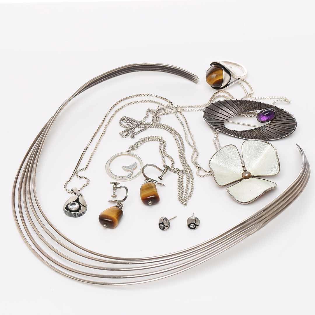 501665. SMYKKER, 8 dele, sølv, 20. århundrede.