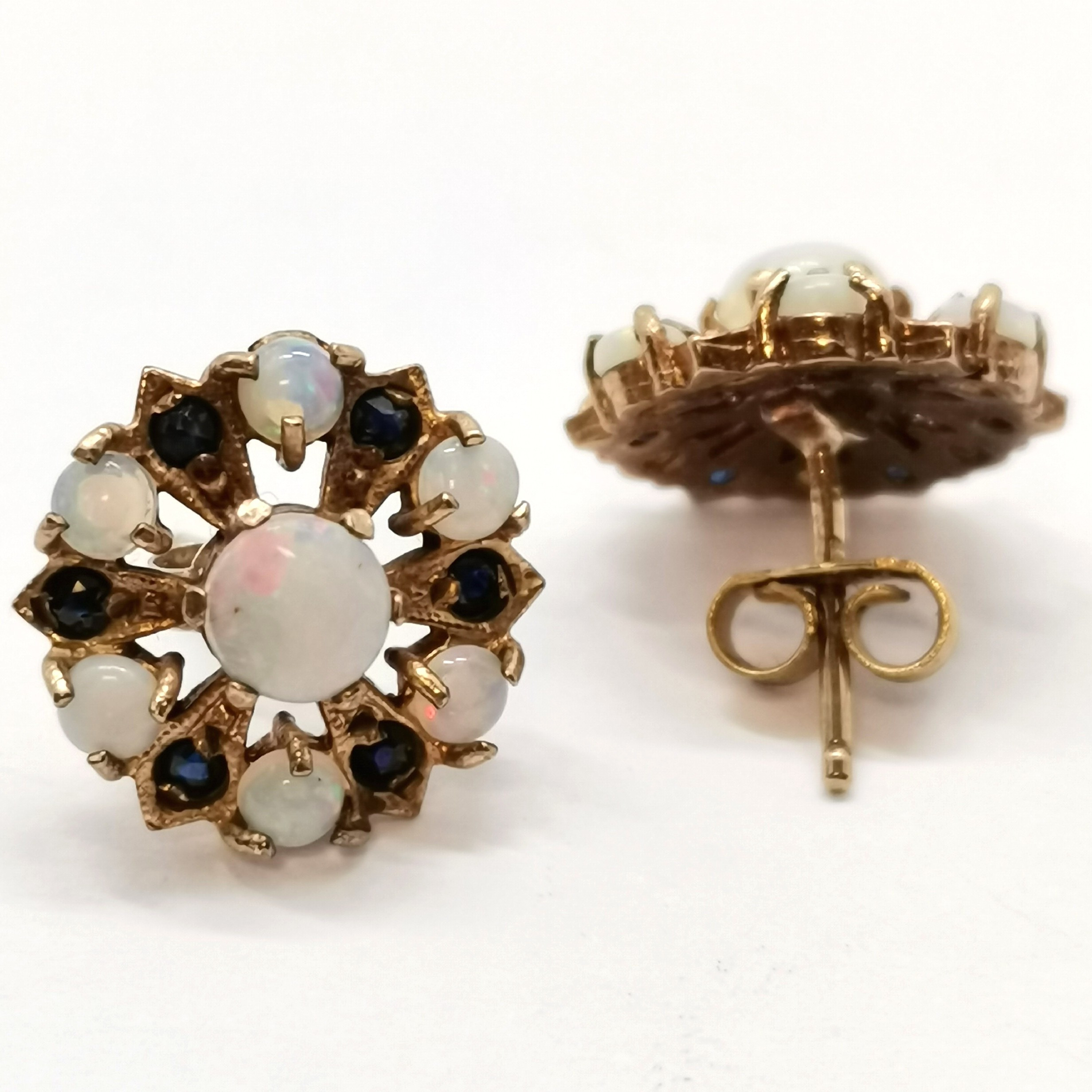 5018425. 9KT GULD OPAL & BLÅ STEN ØRERINGE.