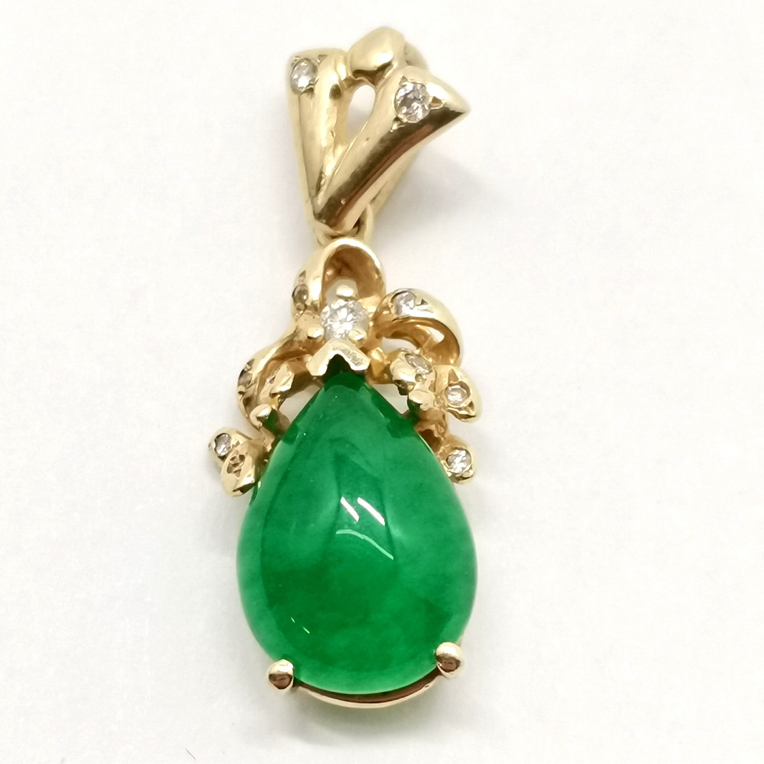 5018464. UMÆRKET GULD DIAMANT & JADE VEDHÆNG.