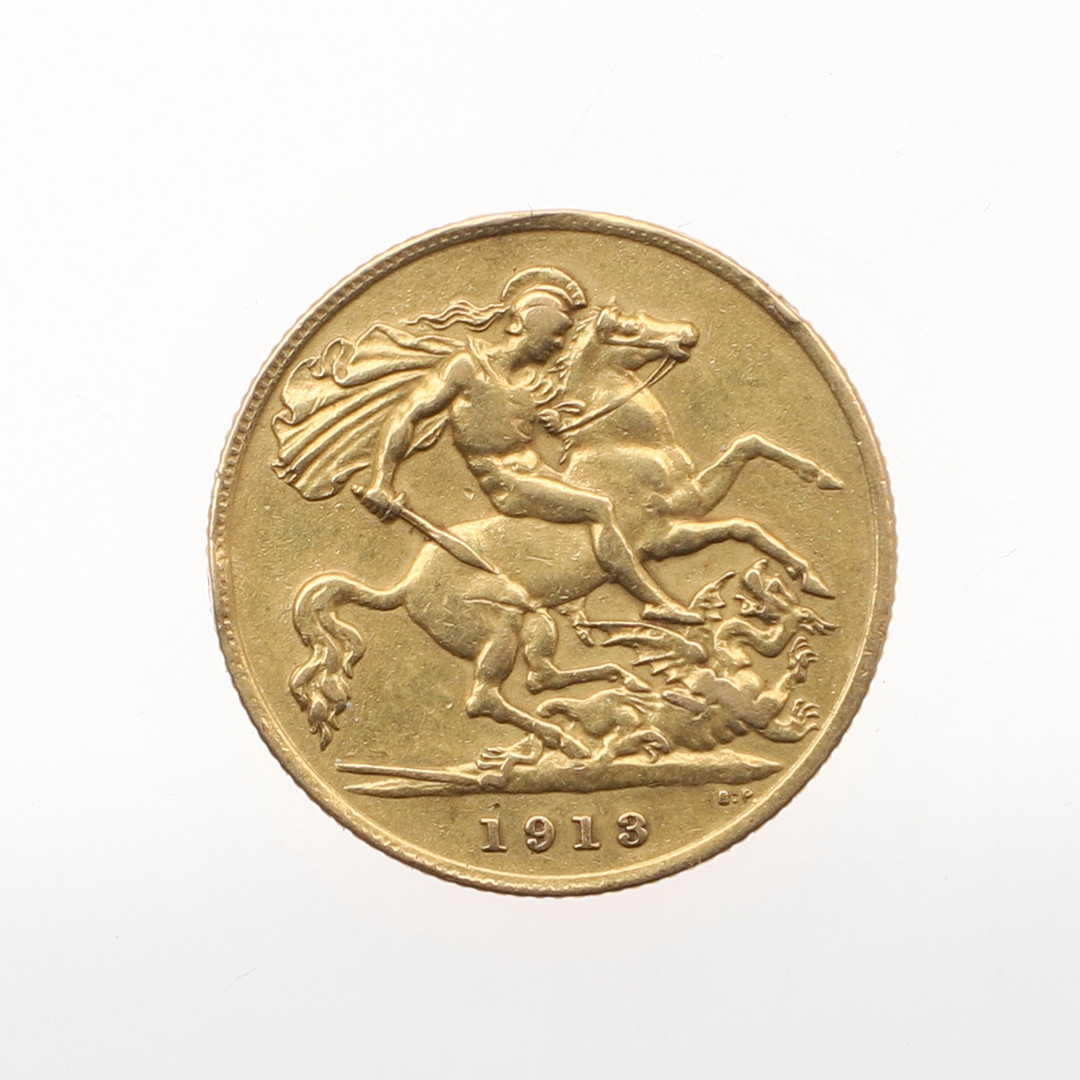 5019244. EN HALV GULD SUVERÆN, 1913.