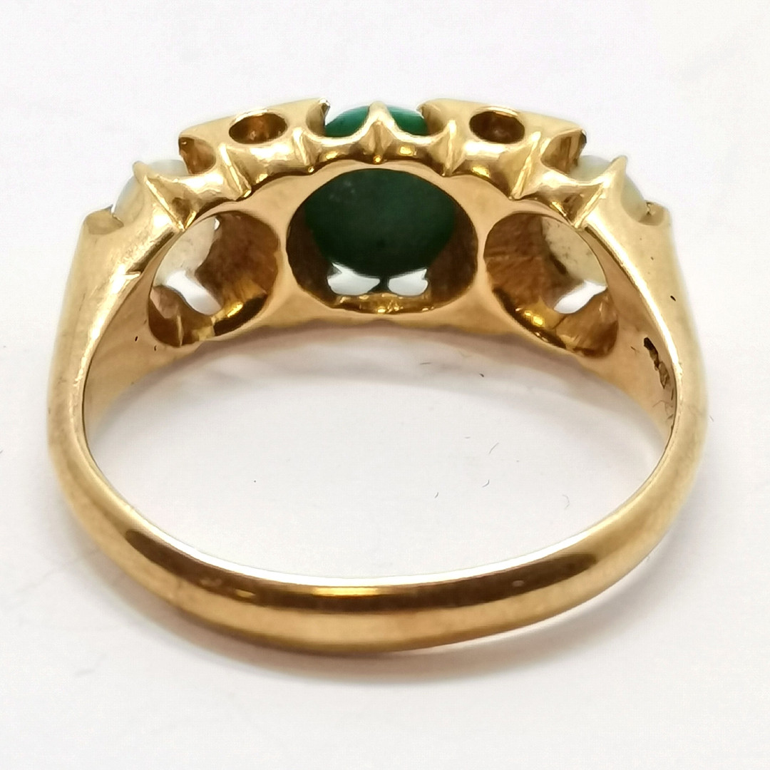 5019342. ANTIK 18K GULD OPAL/TURKIS/DIAMANT SÆT RING.