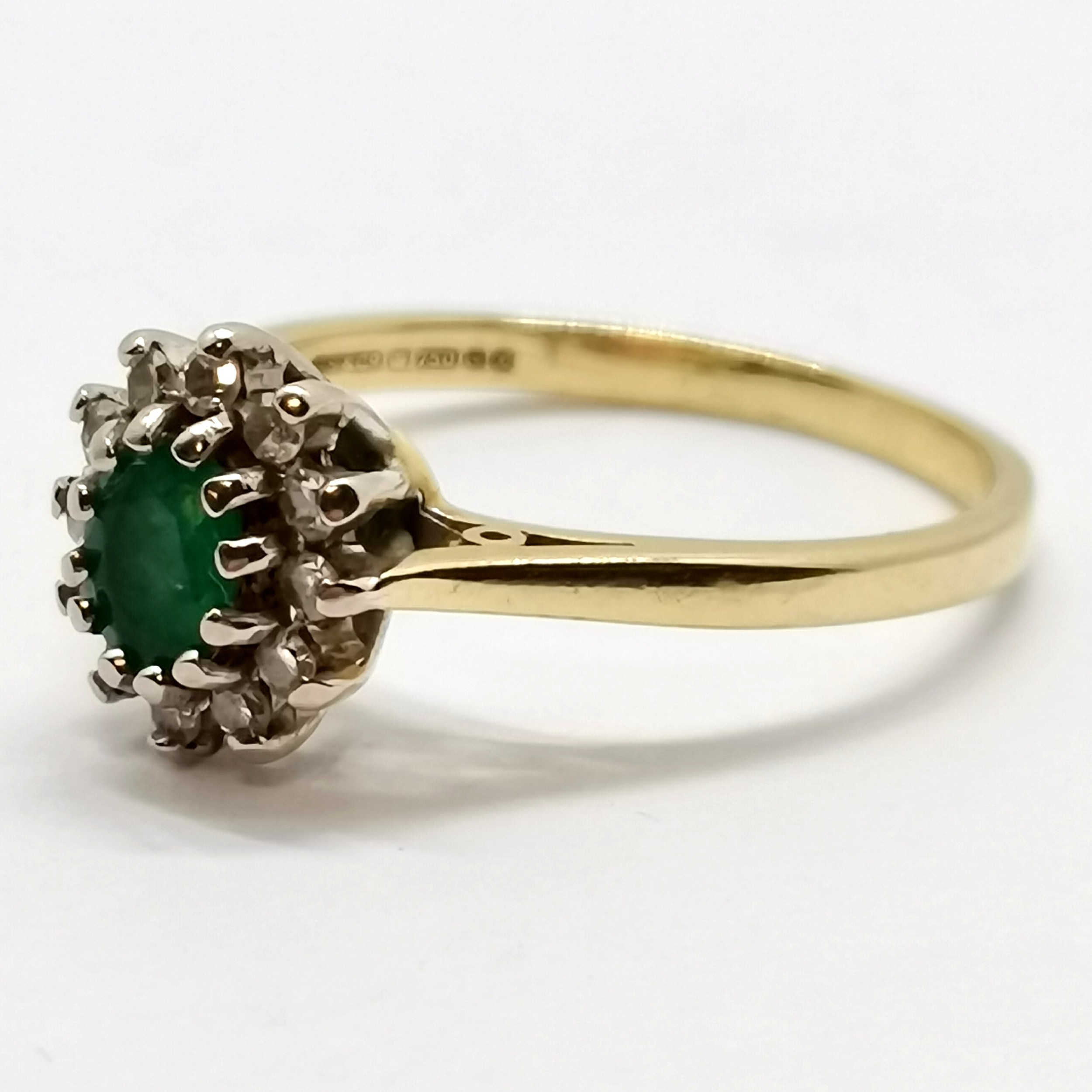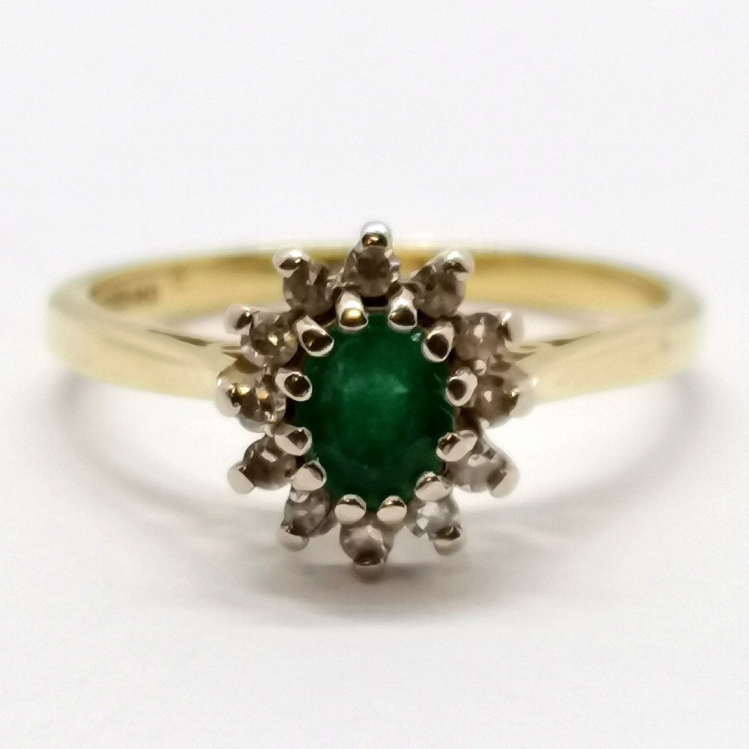 5019578. 18 karat GULD SMARAGD & DIAMANT KLYNGERRING.